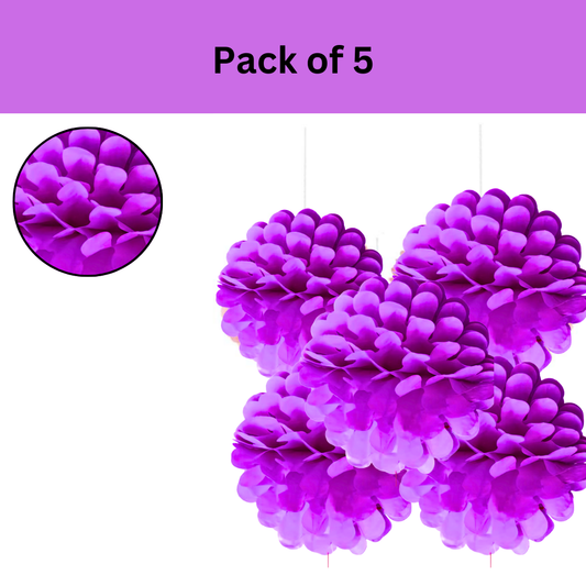 Purple Paper Pom Pom Hangings For Wall Decor -10 Inch - 5PC