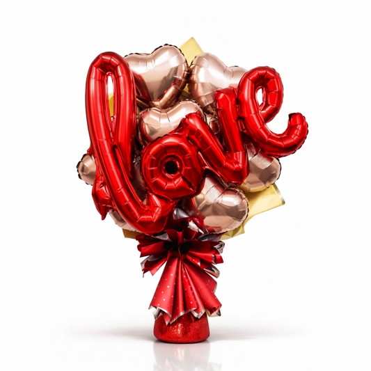 Red & Rose Gold Love You Text Foil Balloon Bouquet - 3PC