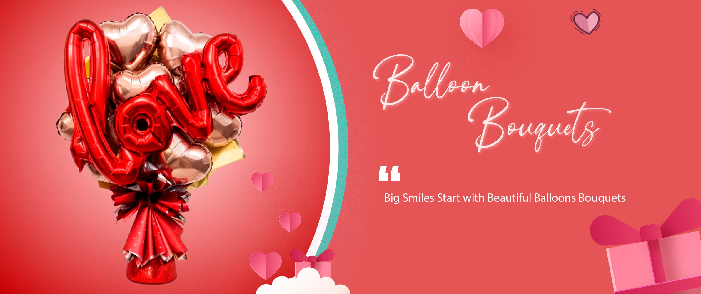 Pink Flower Balloons with Silver Sticks and Love Bouquet