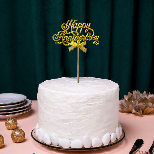Happy Anniversary Silver Glitter Cake Topper - 1PC
