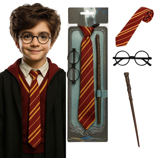 Harry Potter Wand, Tie & Eye Glasses Set - 3PC