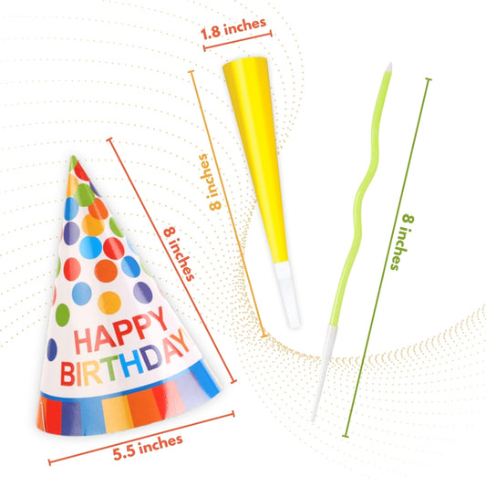 Happy Birthday Hats, Blowouts Party & Candles Combo Set - 20PC