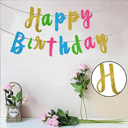 Happy Birthday Mulitcolor Glitter Cursive Banner - 1PC