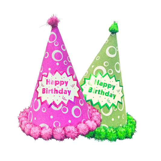 Multicolored Glossy Party Hat w/ Fringe - 1 PC