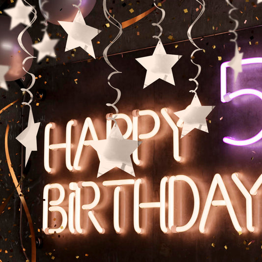 Neon UV/Glow In the Dark Happy Birthday Swirl Decoration - 5PC