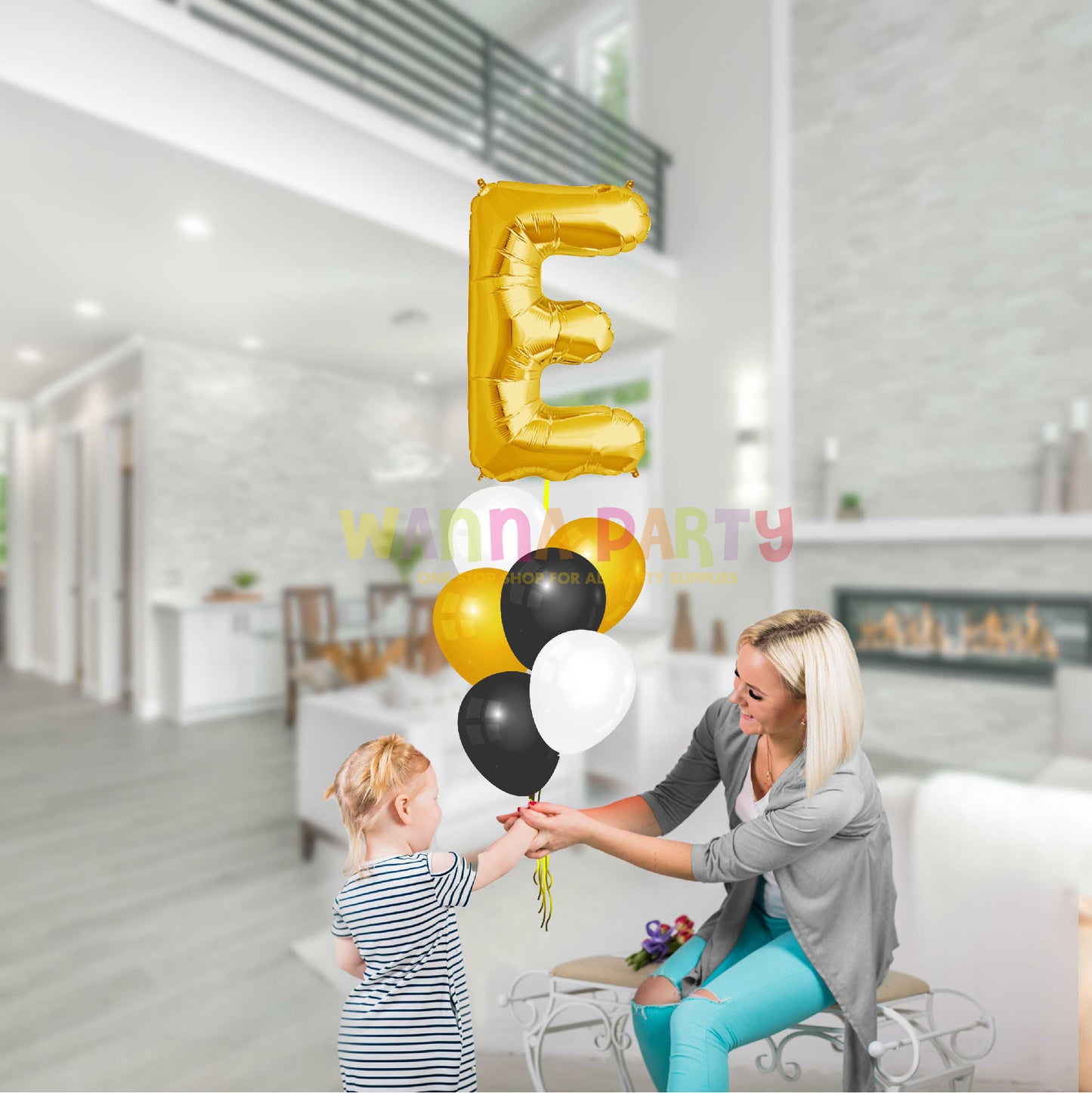 BALLOON BOUQUET:Select the Letters from the collection of Golden balloons that feature every letter from A to Z, so you can mix and match to form any name. Create a fine array of balloons by combining with foil and latex balloons, balloon accessories, and other party supplies for a theme party.