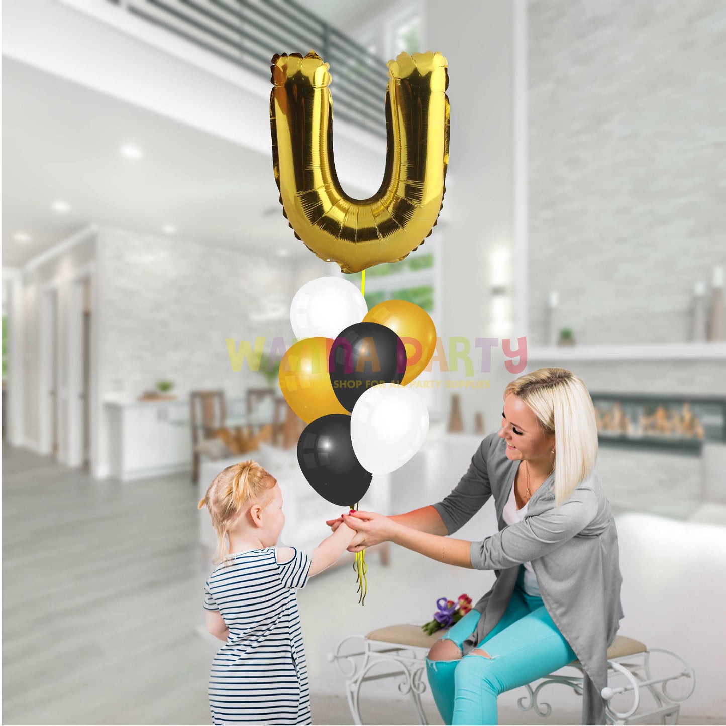 BALLOON BOUQUET: Select the Letters from the collection of Golden balloons that feature every letter from A to Z, so you can mix and match to form any name. Create a fine array of balloons by combining with foil and latex balloons, balloon accessories, and other party supplies for a theme party.
