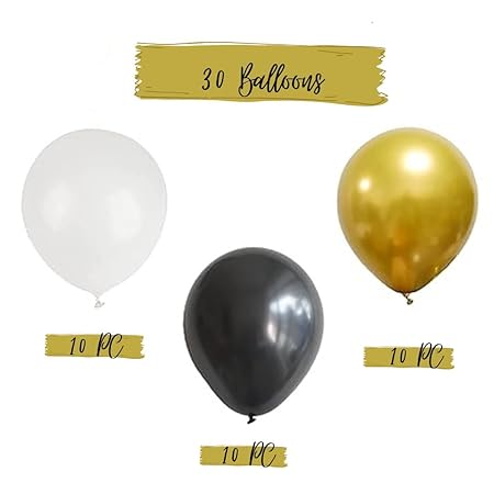 - With silver, gold, and black latex balloons in the mix