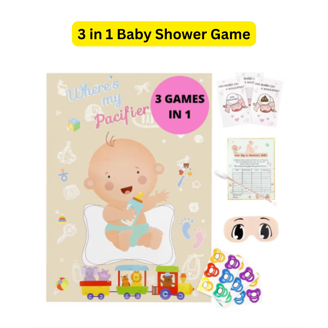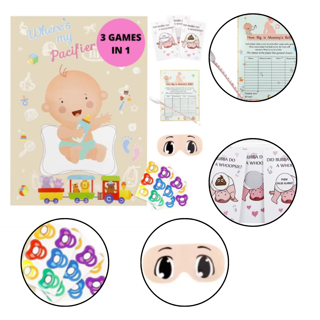 INSIDE THE PACK: The pack contains Baby Shower Game, PACK OF -3