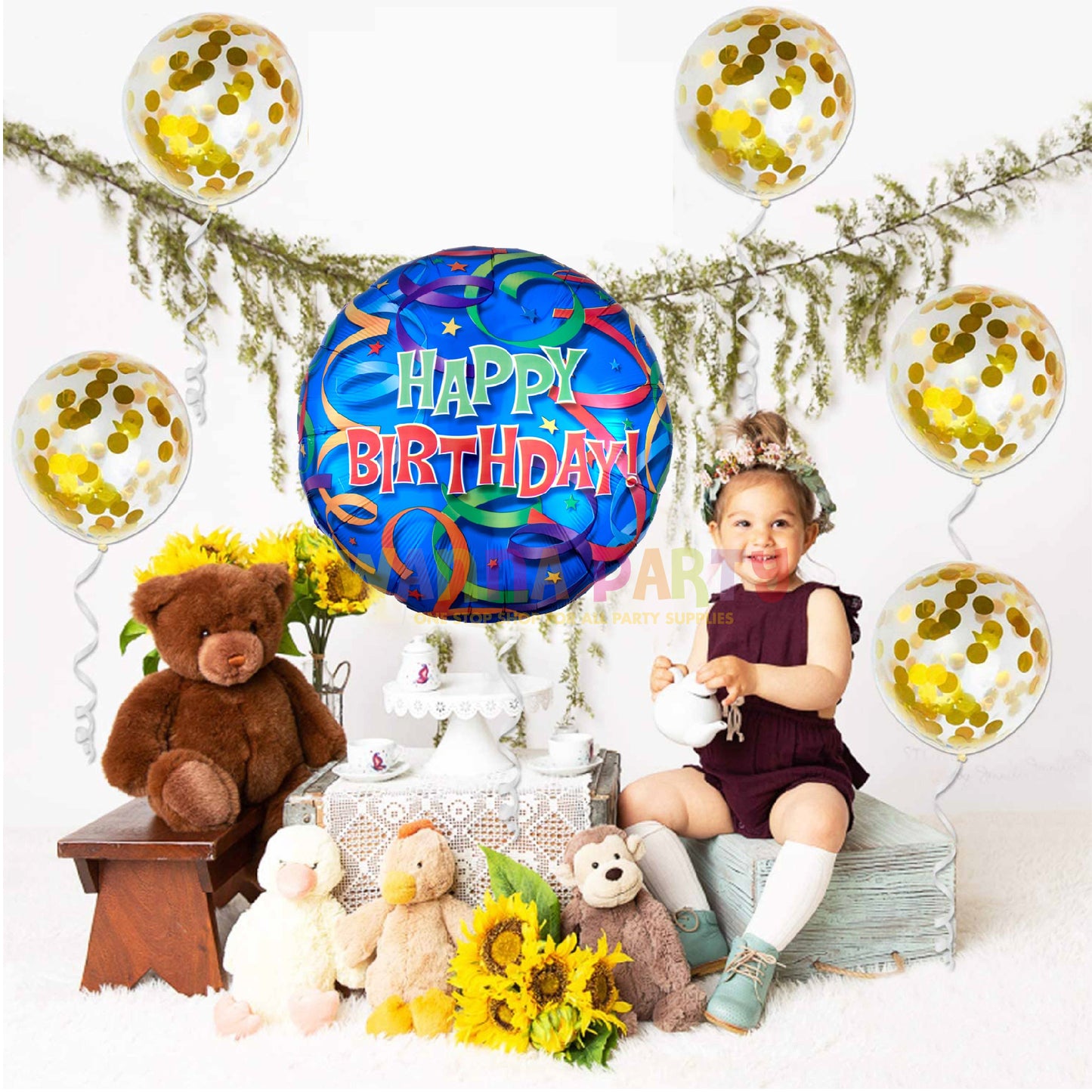 Wanna Party Jumbo Shape Celebration Streamers Balloon, Foil Balloons for Kids Birthday, Happy Birthday Round Foil Balloons, 36 Inches