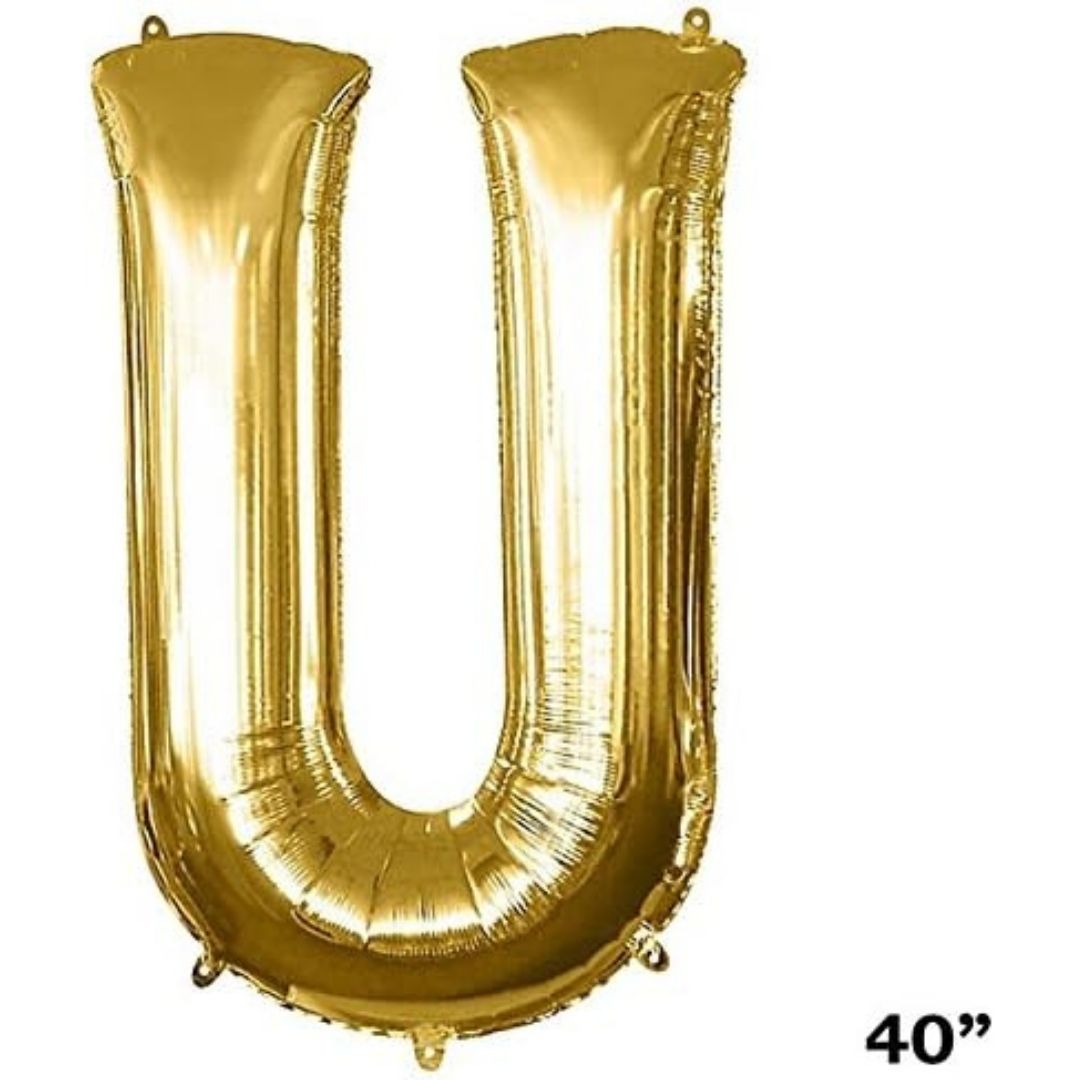 A Giant Gold Letter U Balloon is perfect for adding a personalized touch to your next event! Combine this gold letter balloon with other letters for a custom message at a graduation, birthday, baby shower, or wedding. The metallic finish of this foil balloon makes for an eye-catching decoration. Gold letter balloons also make a trendy photo booth background at your event. More details: Foil Self-sealing Reusable Balloons arrive uninflated