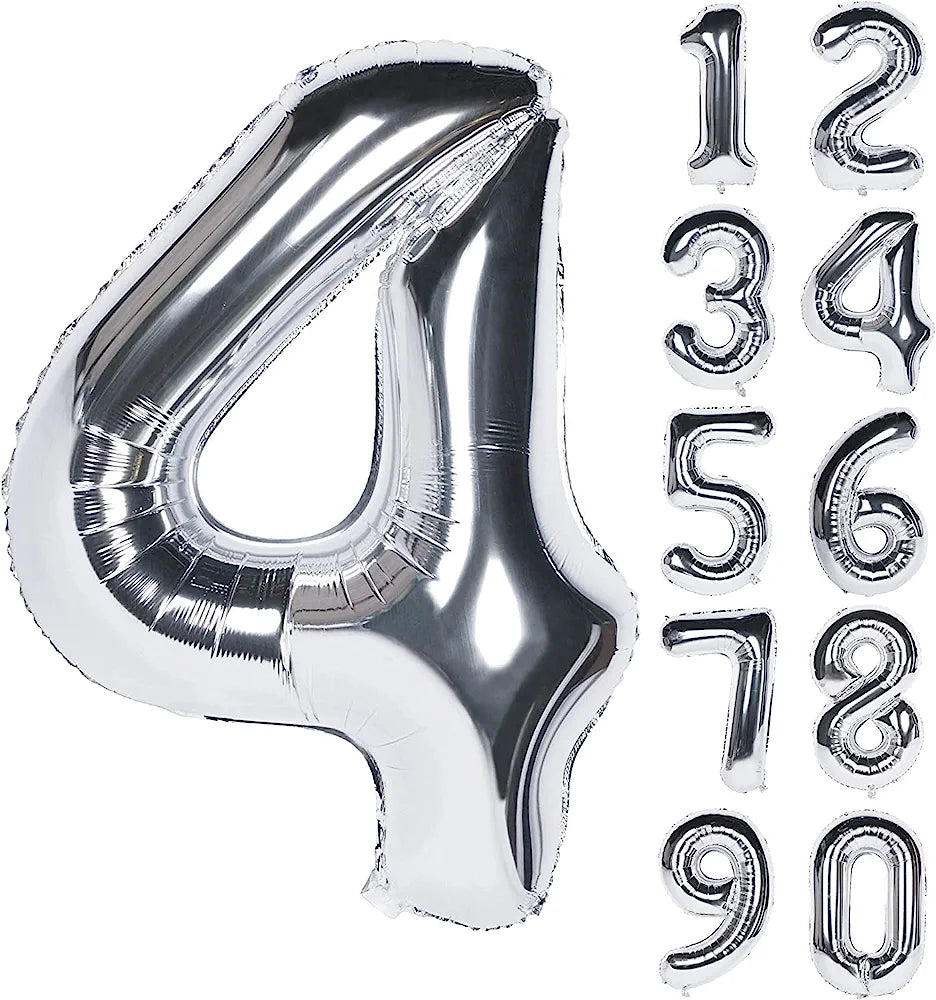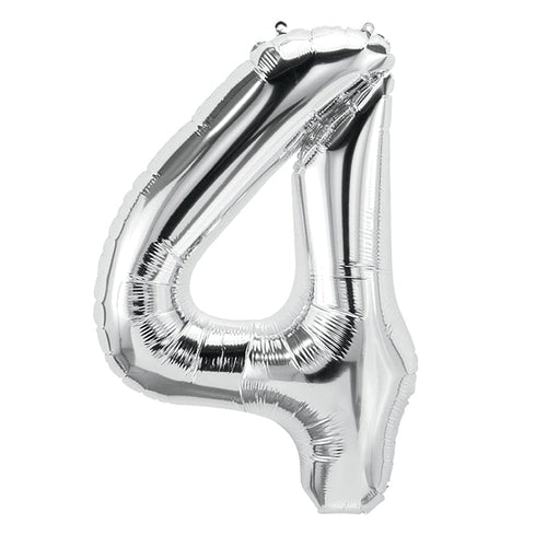 Number 4 Silver Foil Balloon - 40 inches - 1PC
