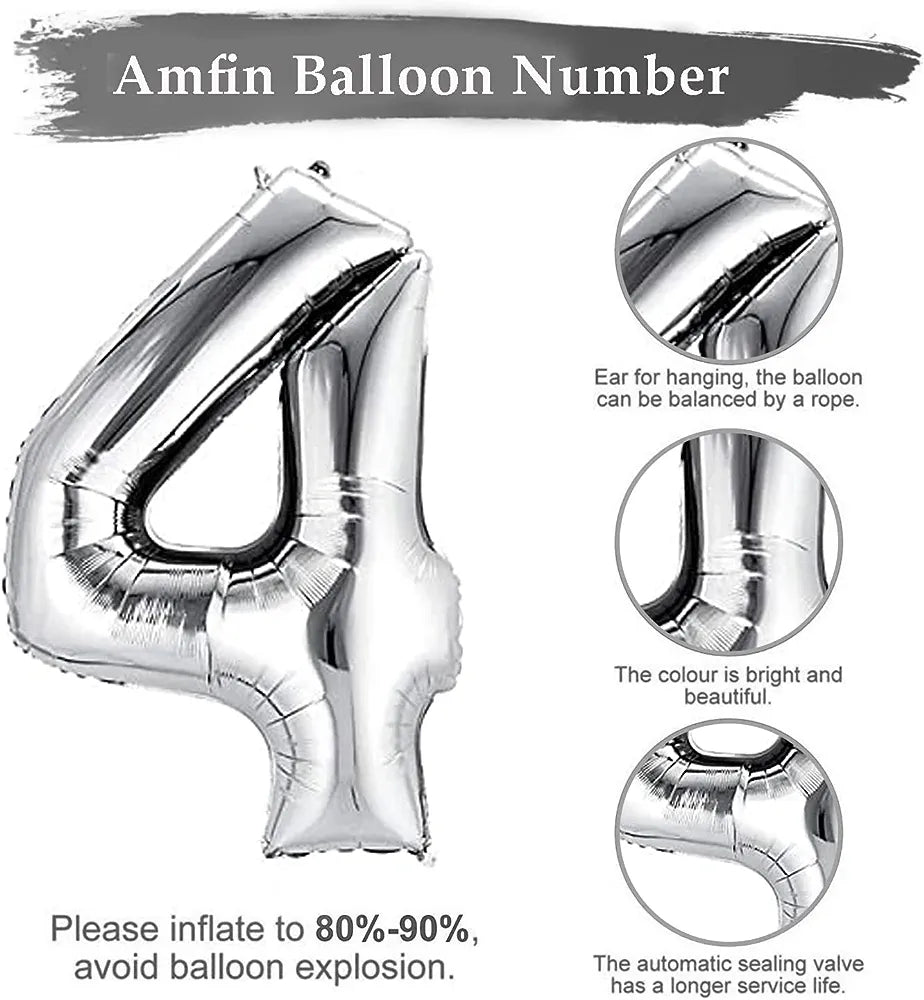 BOUQUET:A classic party essential, the pack contains a large 40" Number 4 Silver balloon that can be combined with other number or letter balloons to completet the text, name, age or phrase. Can be used alone or as part of a balloon decoration or a balloon bouquet.