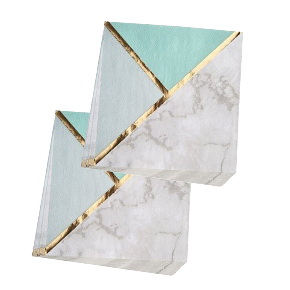 INSIDE THE PACK:This package contains 16 PCS Aqua & Gold Paper Napkins
