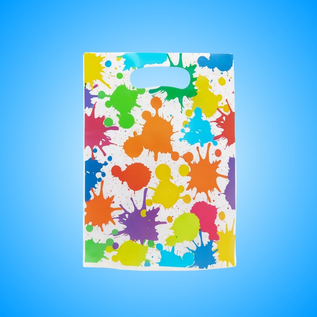 Vibrant Artistic Design: Bright and colorful paint splatter and palette print make these loot bags a fun and creative choice for art-themed parties, birthdays, and craft events.