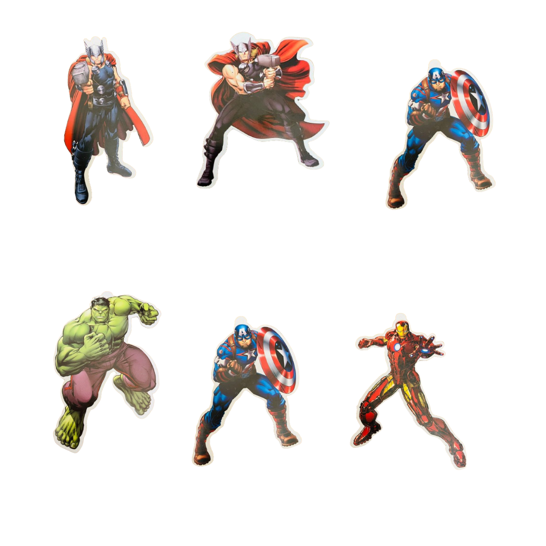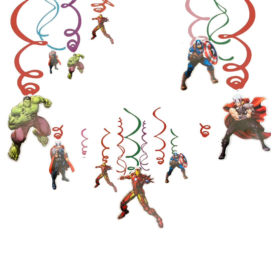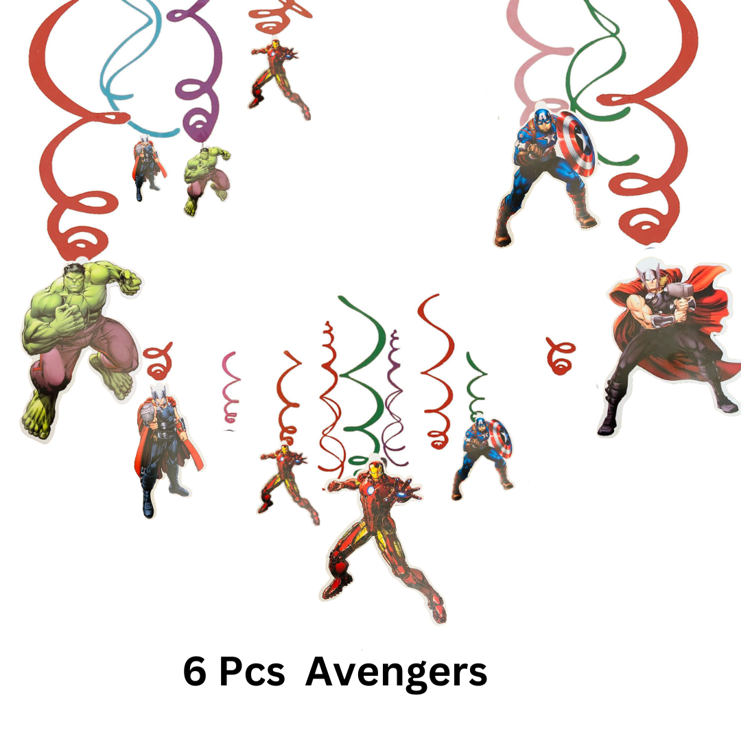 Heroic Avenger Swirls :Elevate your Avenger theme decor with our Avenger Paper Swirls - a set of 6 featuring iconic Avenger character figures combined with eye-catching spiral paper swirls. Each swirl showcases dynamic Avenger characters, The spiral design infuses action and movement into your decor.