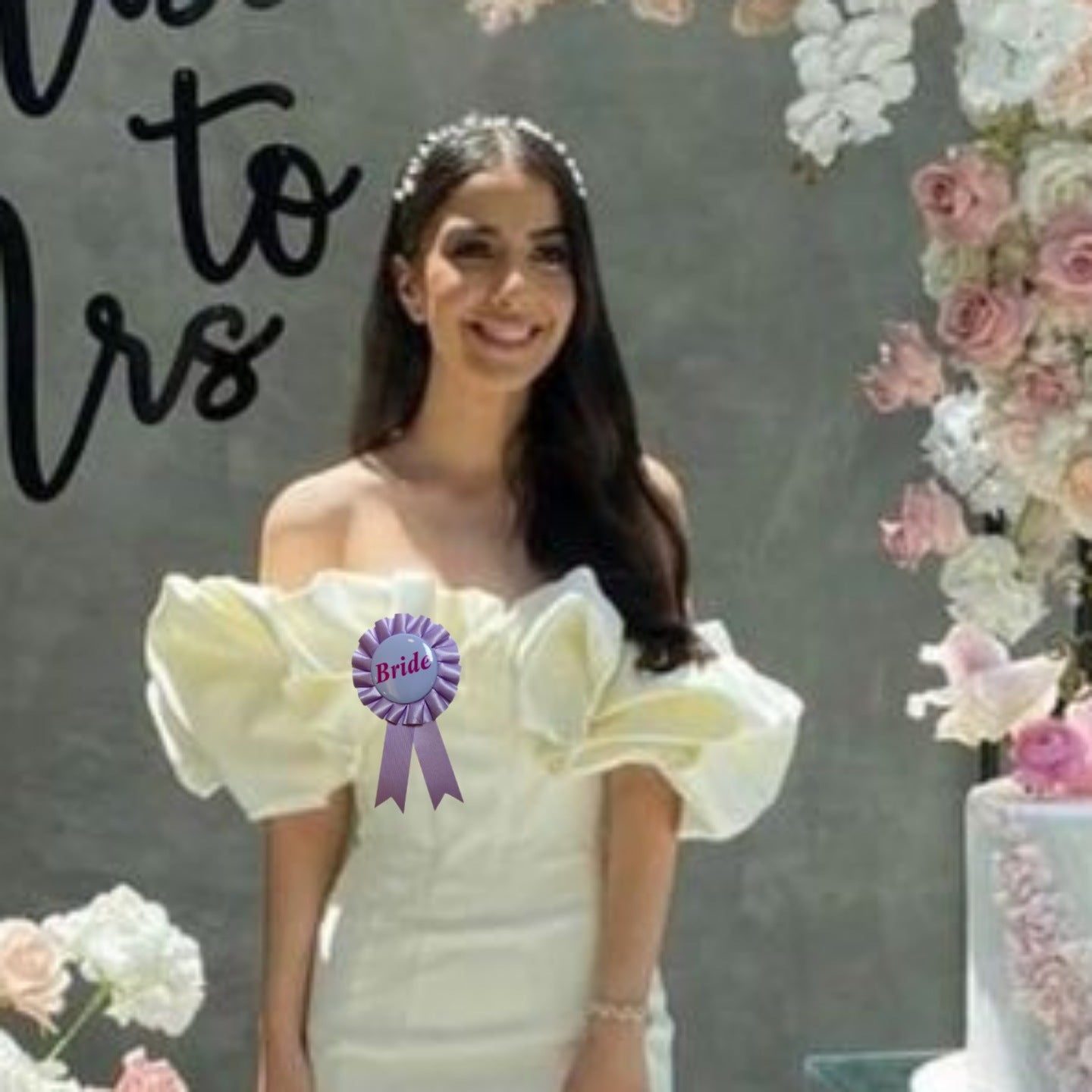 Behold the exquisite Award Ribbon for the Bride. Present the Bride with this distinguished Award Ribbon, a token of appreciation and affection that crowns her with love and admiration on her journey to forever!