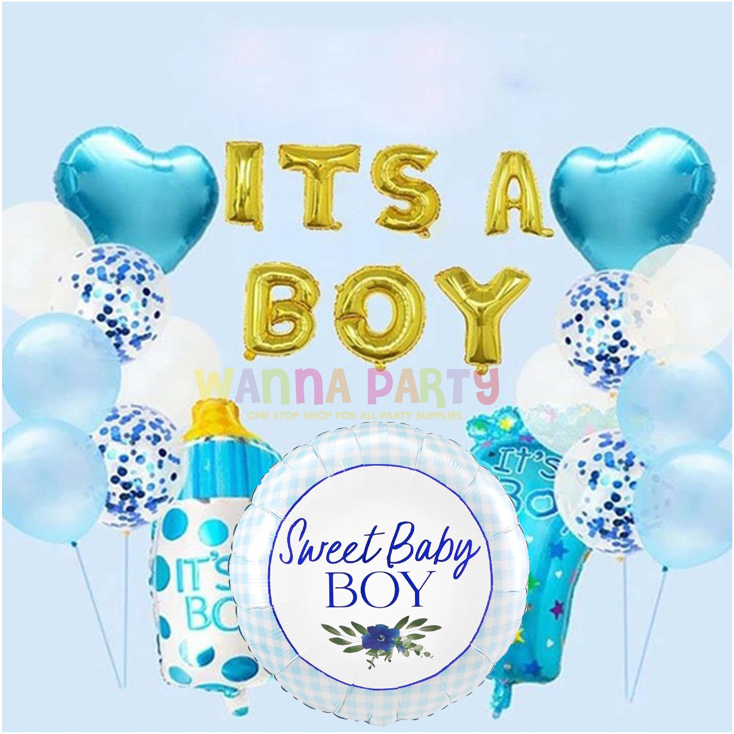 Wanna Party Baby in Bloom Sweet Boy Balloon 18 Inches, Foil Balloon Decoration for Baby Shower, Round Helium Balloon For Baby Boy