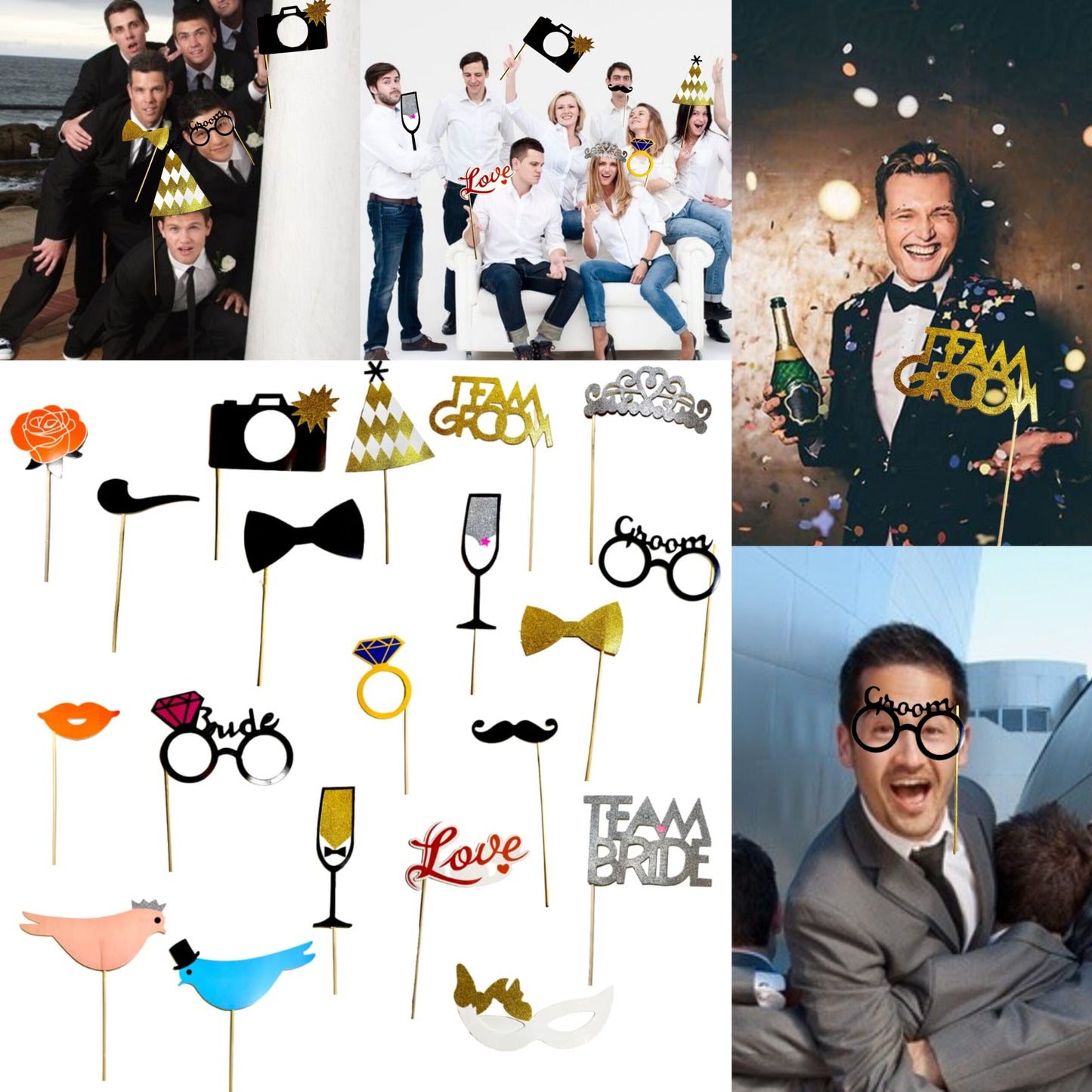 Wanna Party Bride to Be Props - Team Bride Team Groom Photo props - Bridal Shower Props for Bride/Bride to Be Props and Decoration Set for Bachelorette Party Photo Props, Weddings - Pack of 20