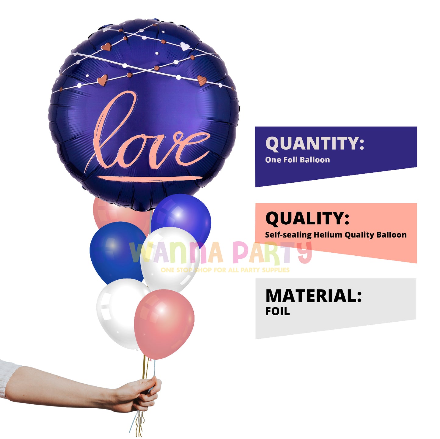 Wanna Party Better Together Navy Blue Love Balloon 18 Inches, Foil Balloon for Engagement, Wedding Ceremony, Anniversary (Blue)