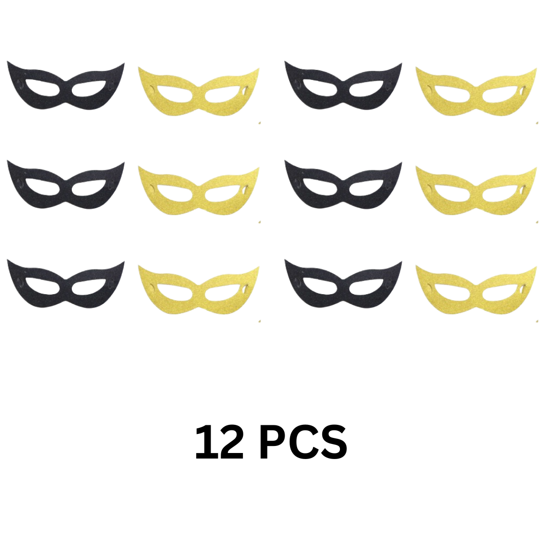 INSIDE THE PACK:The pack contains - 12 pcs Black and Golden Masquade Mask combo 6 pcs of gold and 6pcs of black