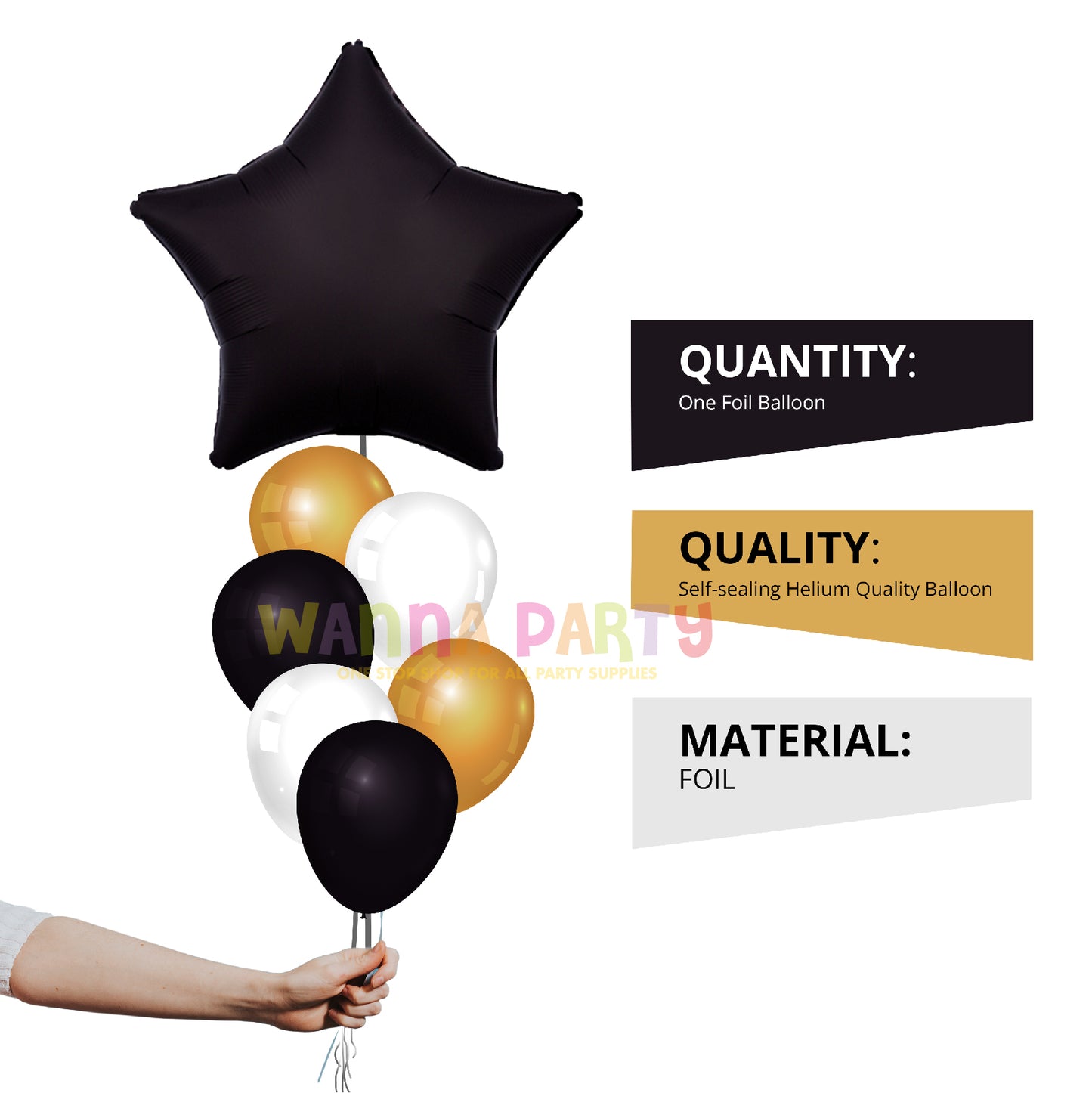 Wanna Party 18" Black Star Foil Balloon | Foil Balloons for Birthday Decorations | Pack of 1