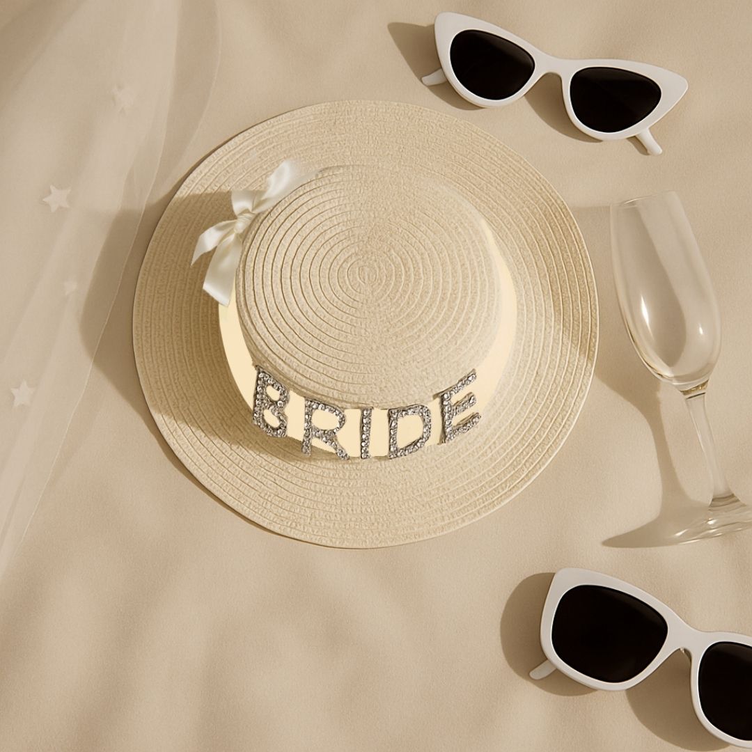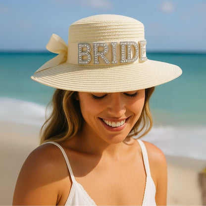 Beach Hat for Bride w/ Rhinestones for Bachelorette Party/ Beach Party - 1PC