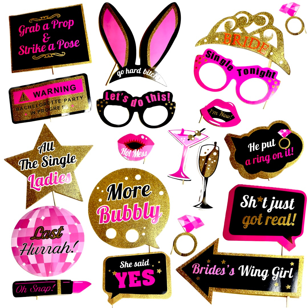 Easy to Use:No complicated setups here – simply grab a prop, strike a pose, and let the fun unfold, making every moment picture-perfect. The pink, black, and gold color scheme adds a touch of sophistication, ensuring your bachelorette party stands out with elegance.