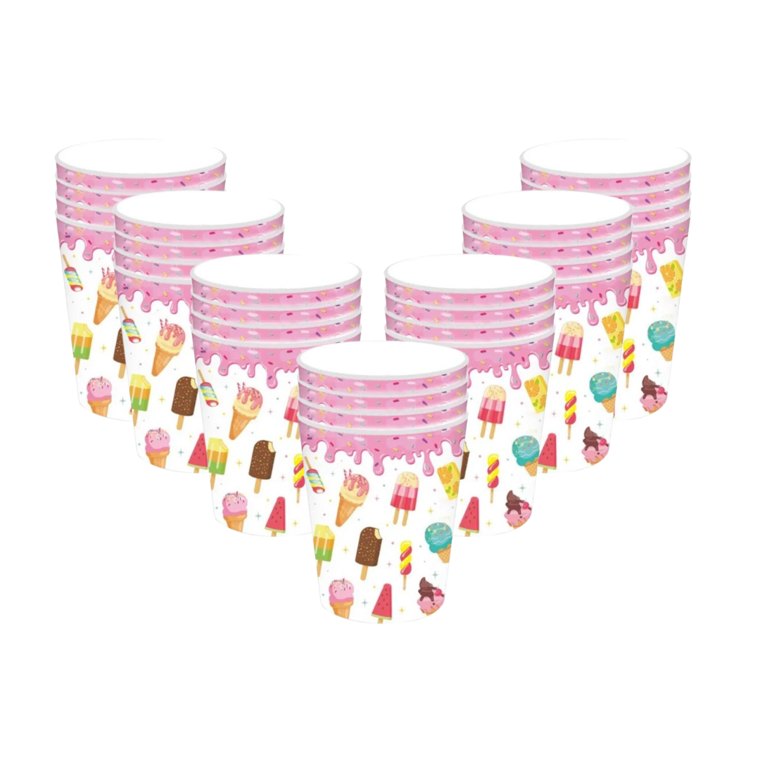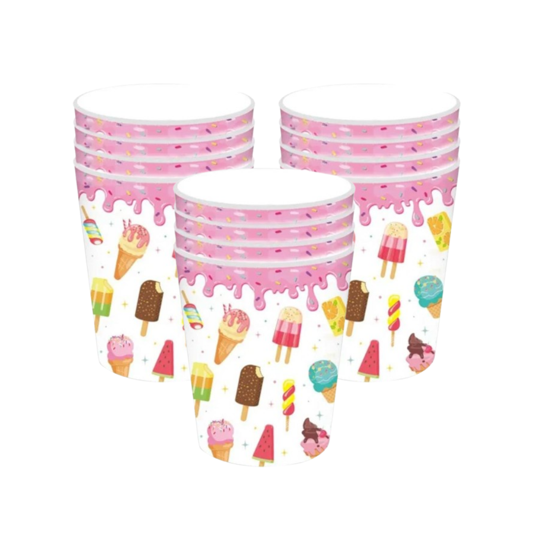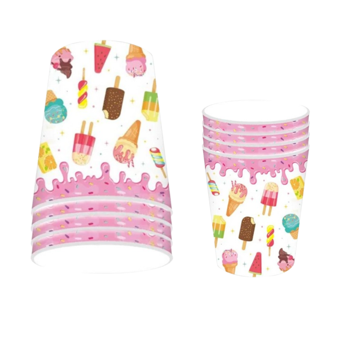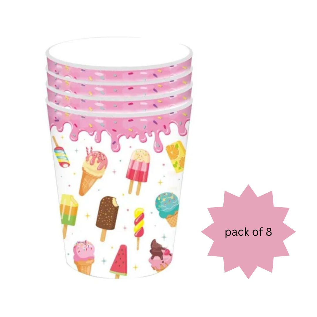 Wanna Party Ice Cream Theme Decorations Paper cup | Pack of 8 | Ice Cream Theme | Happy Birthday | for Kid's Ice Cream Theme Party |Summer Pool | Party Supplies