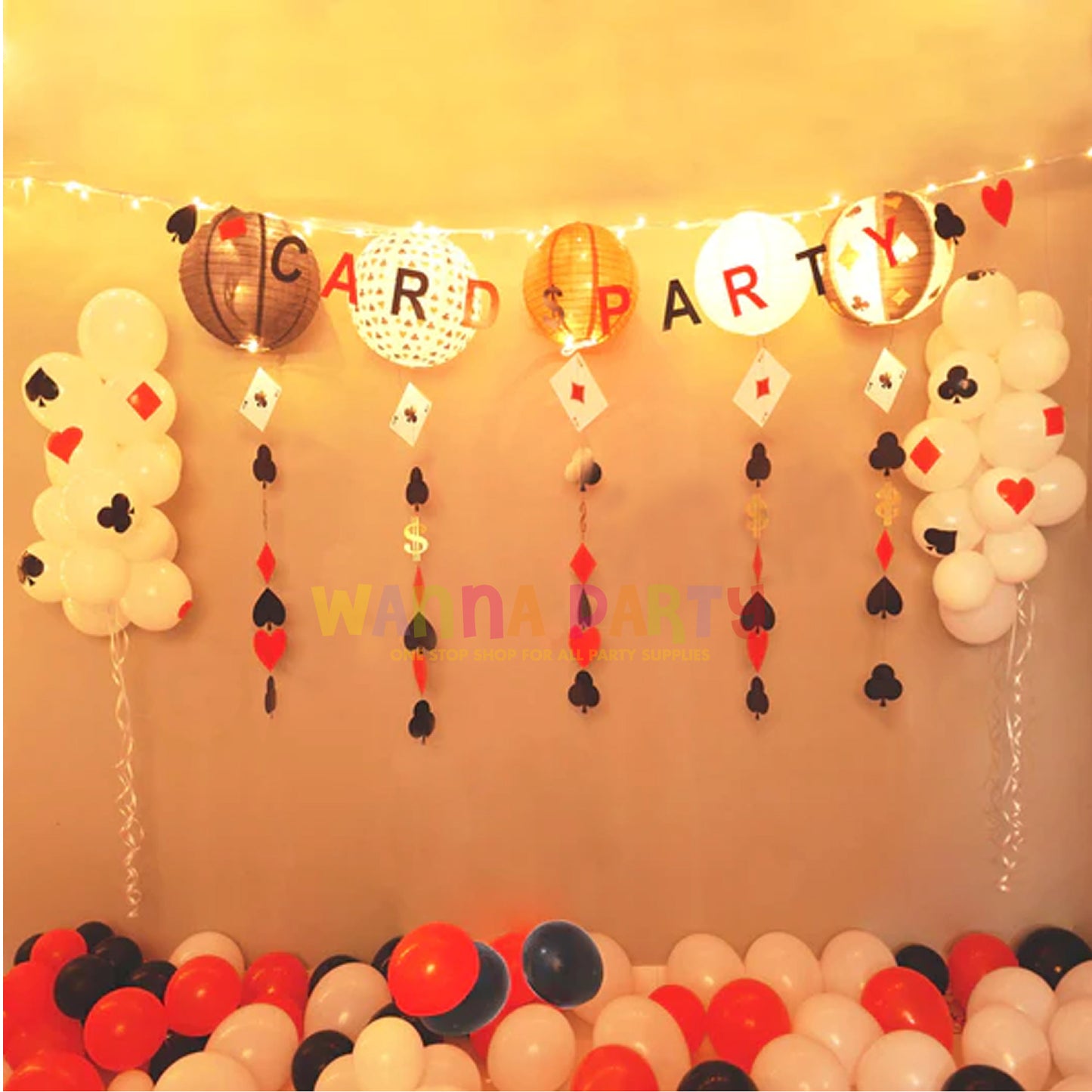 Wanna Party Card Party Letter Banner Decoration, Red & Black Casino Themed Decoration Banner (Pack of 1)