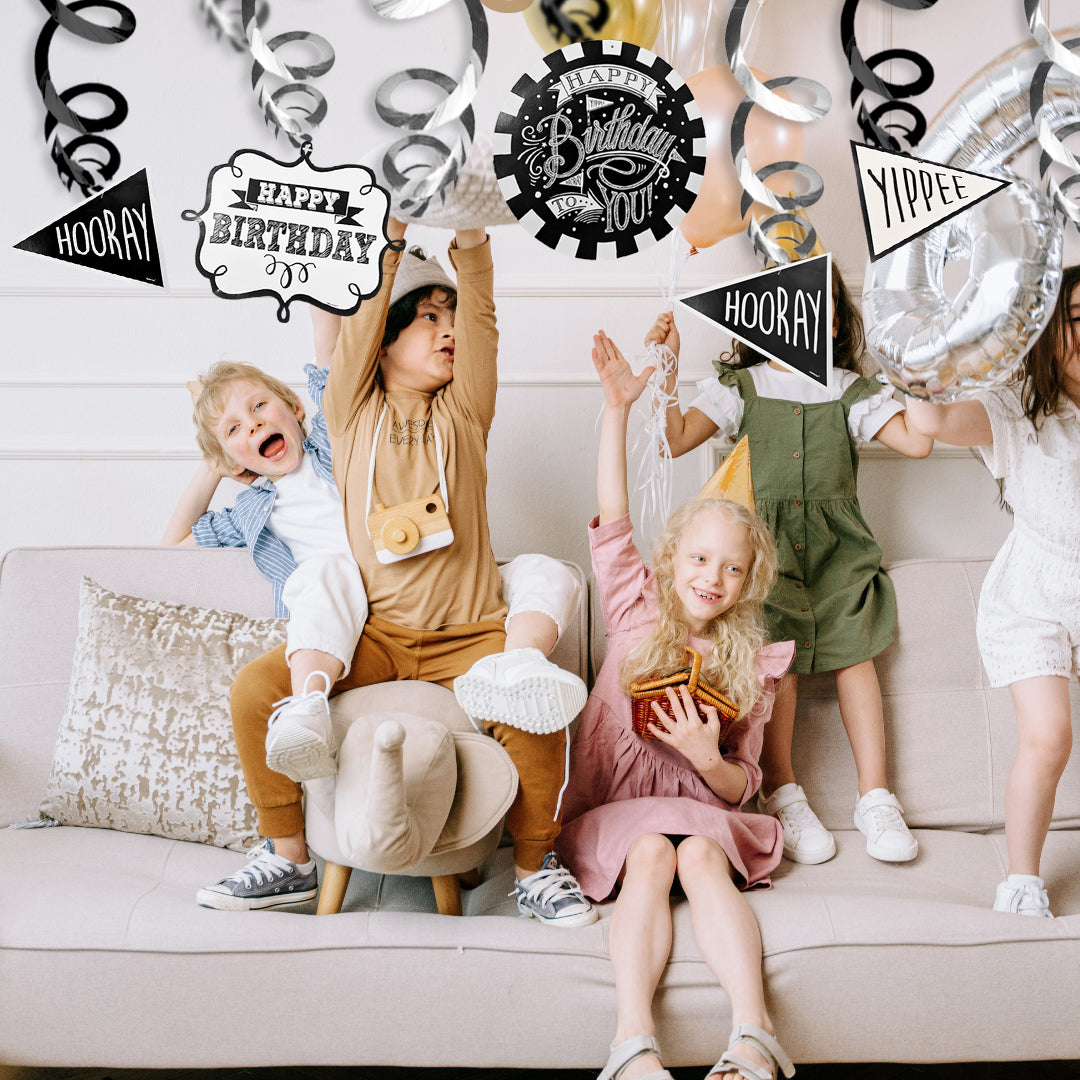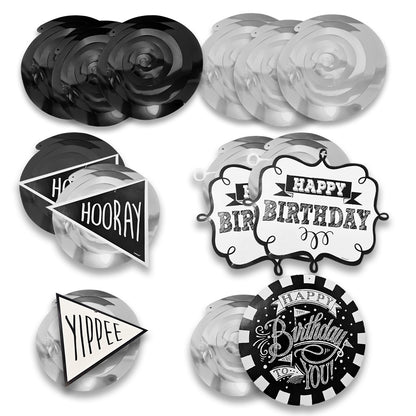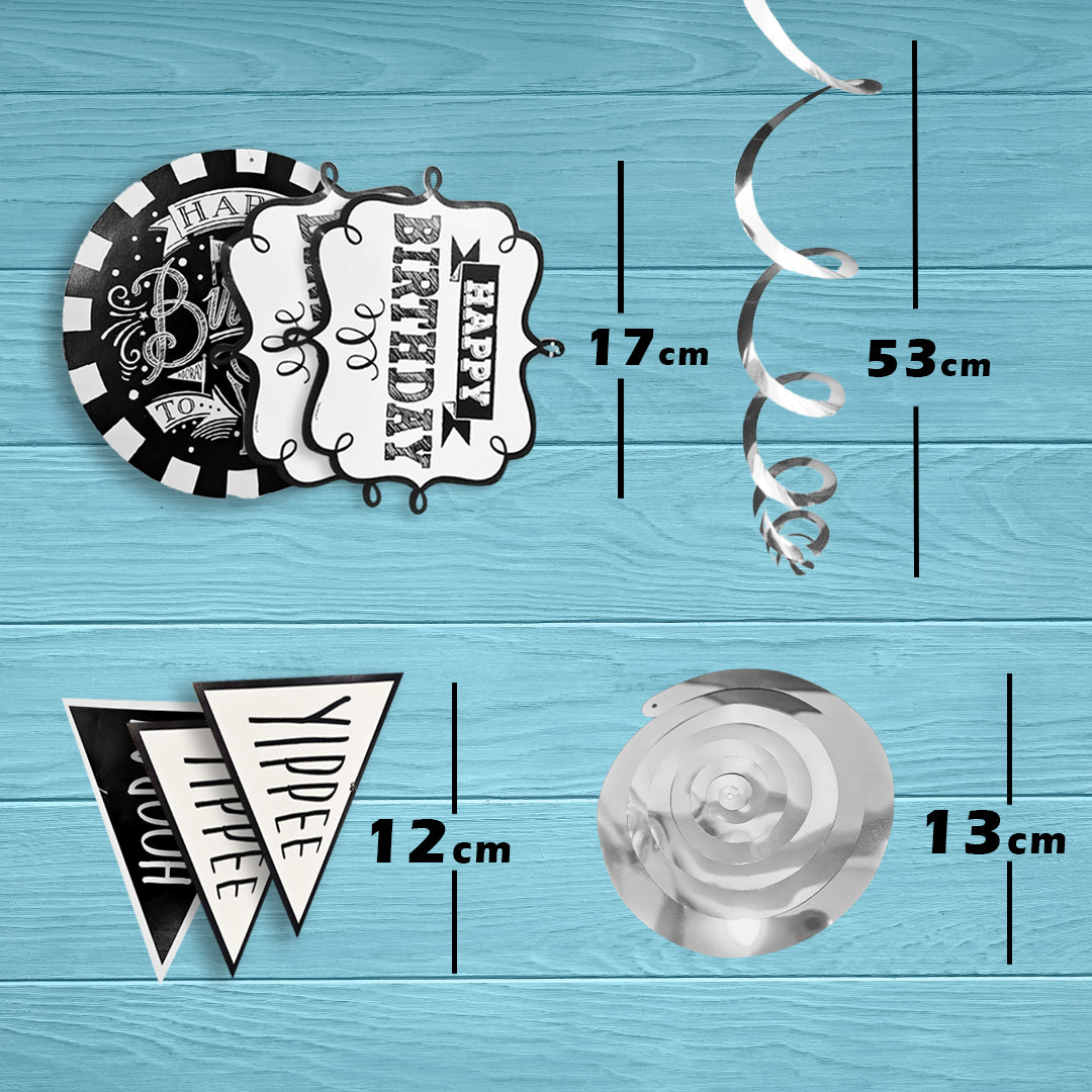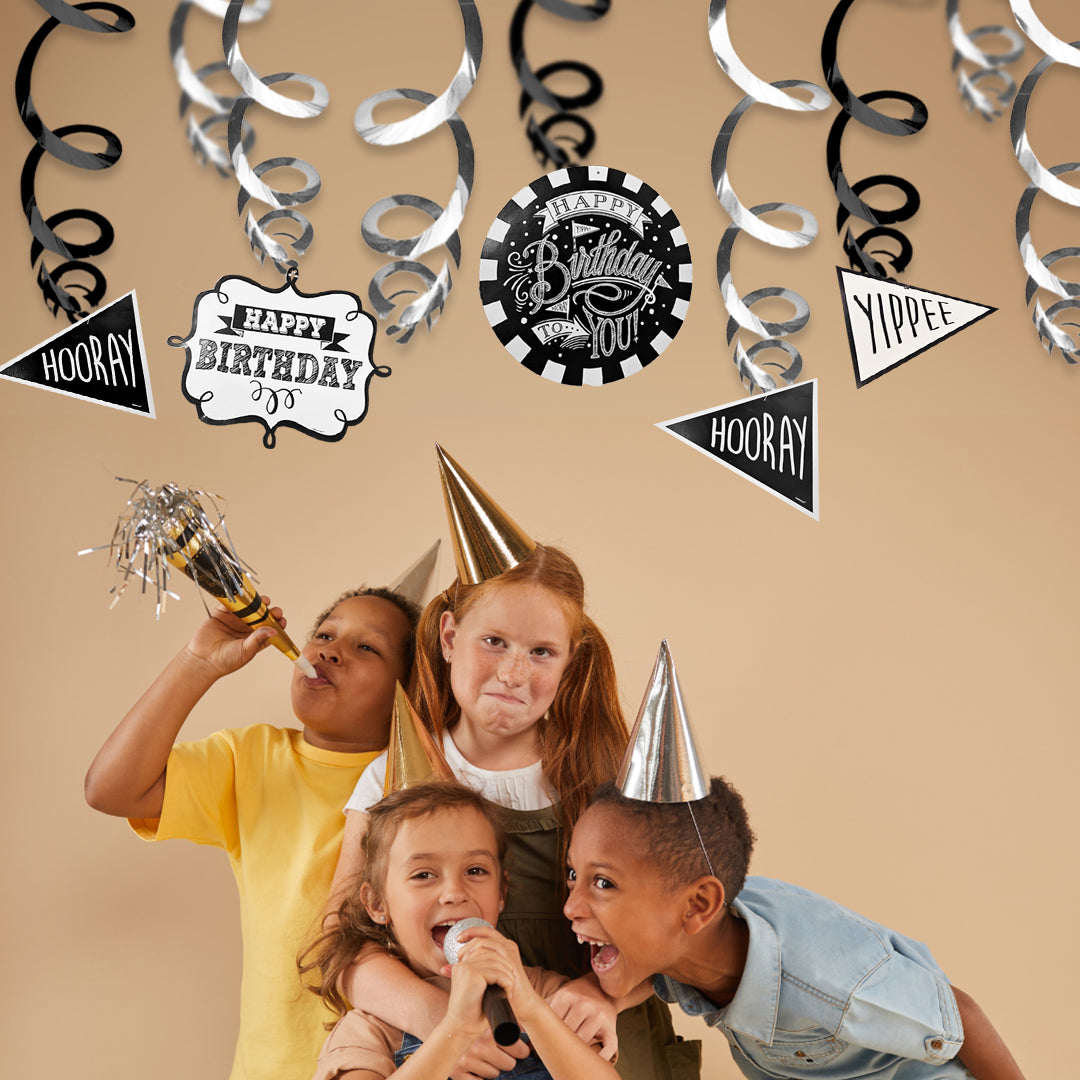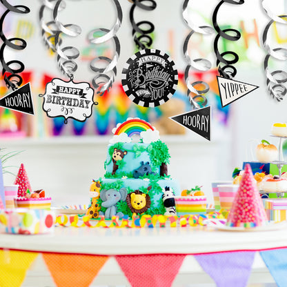 Elevate your party decor with these Chalkboard Swirl Decorations! Each pack includes 12 high-quality swirls with charming chalkboard-style cutouts, perfect for adding a personalized touch. Write names, messages, or themed phrases with chalk or chalk markers. Whether it’s a birthday, graduation, or rustic-themed celebration, these hanging decorations set the mood with elegance and fun.