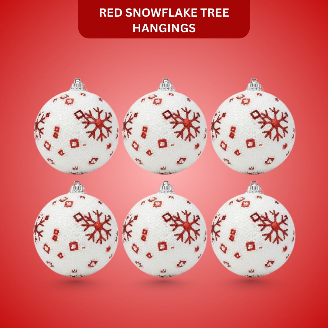 Christmas Glitter White Balls with Red Snowflakes - 6PC
