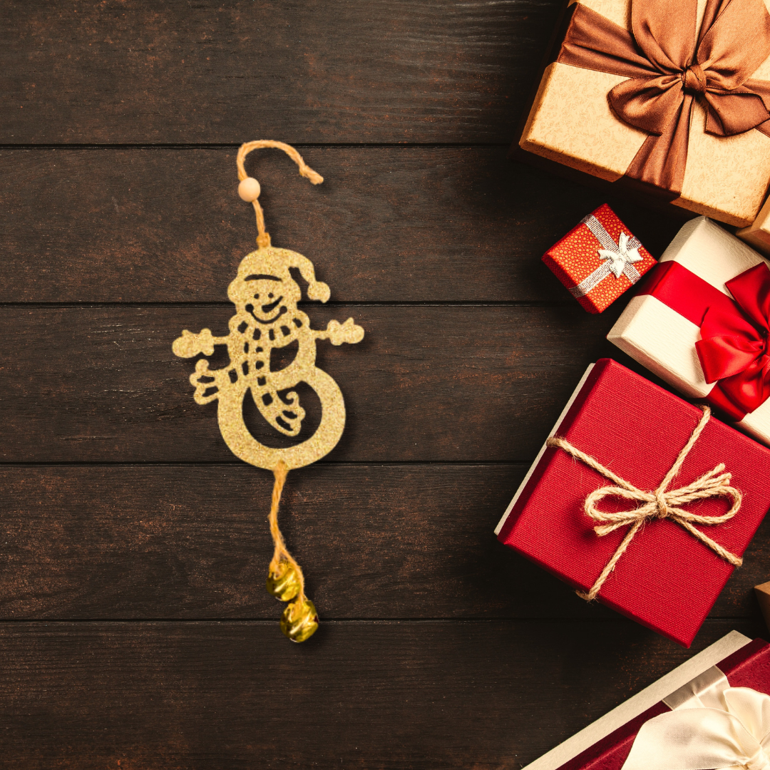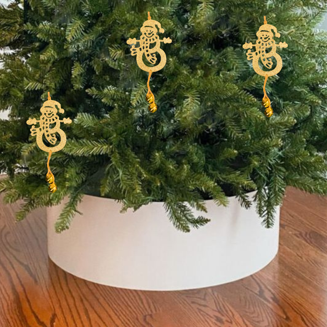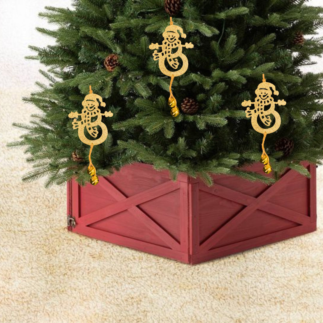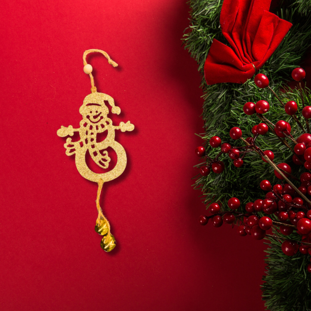 Wanna Party Gold Christmas Snowman Hanging Ornaments, Glitter Gold Reusable Double Sided Snowman Hanging with bells for Winter Christmas Tree Decorations-1 PC