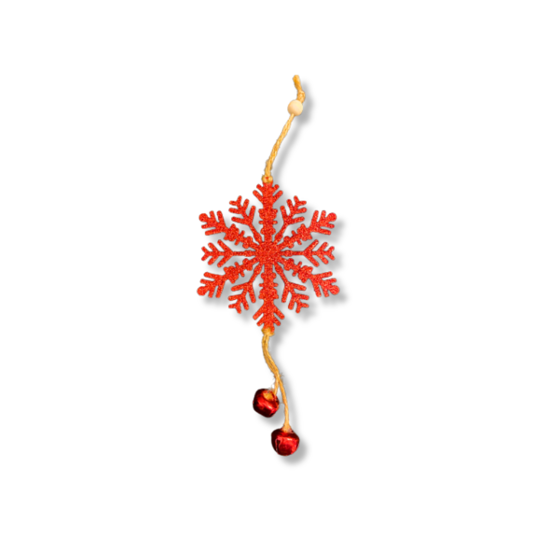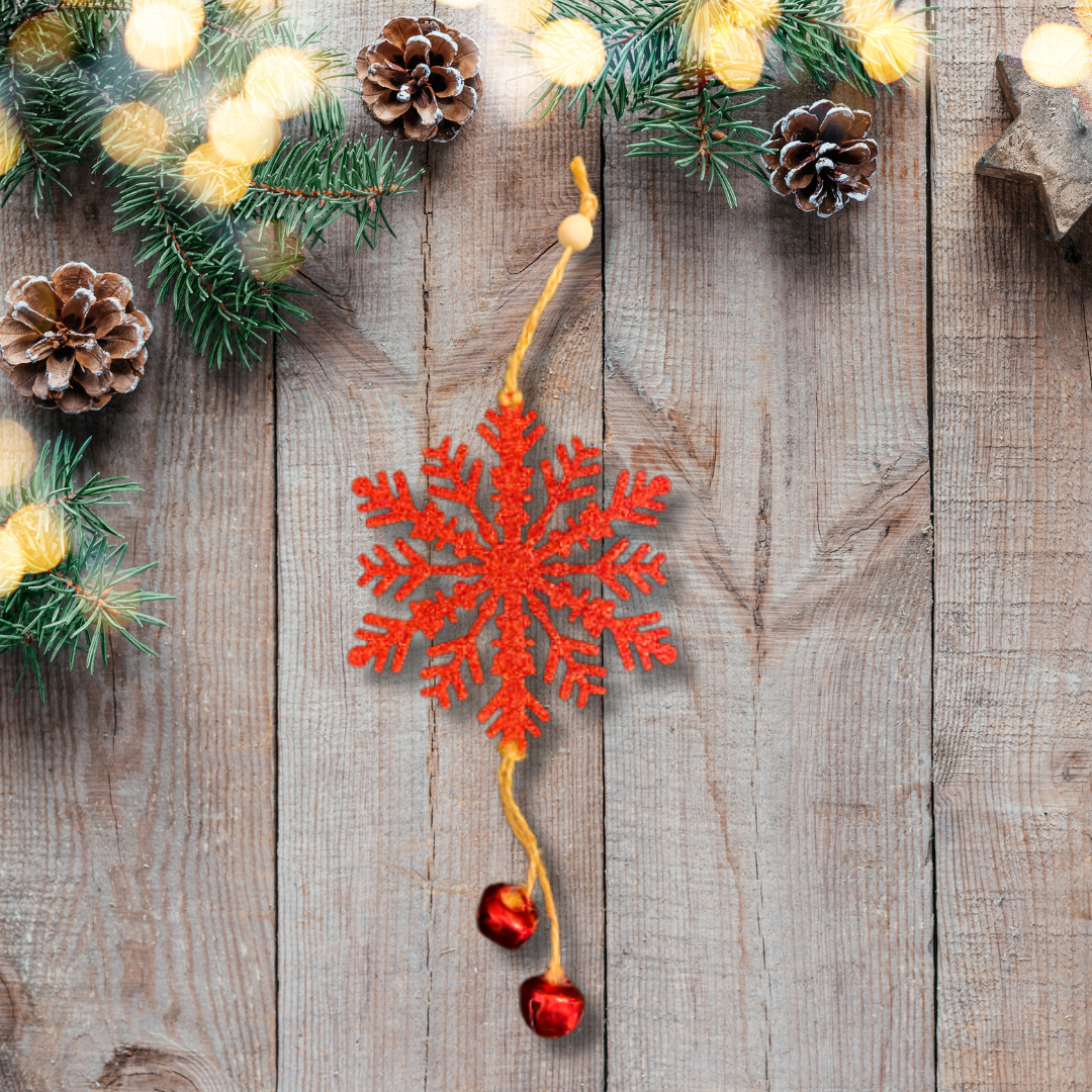 Wanna Party Red Christmas Snowflakes Hanging Ornaments, Gliiter Red Reusable Double Sided Snowflake Hanging with bells for Winter Christmas Tree Decorations-1 PC
