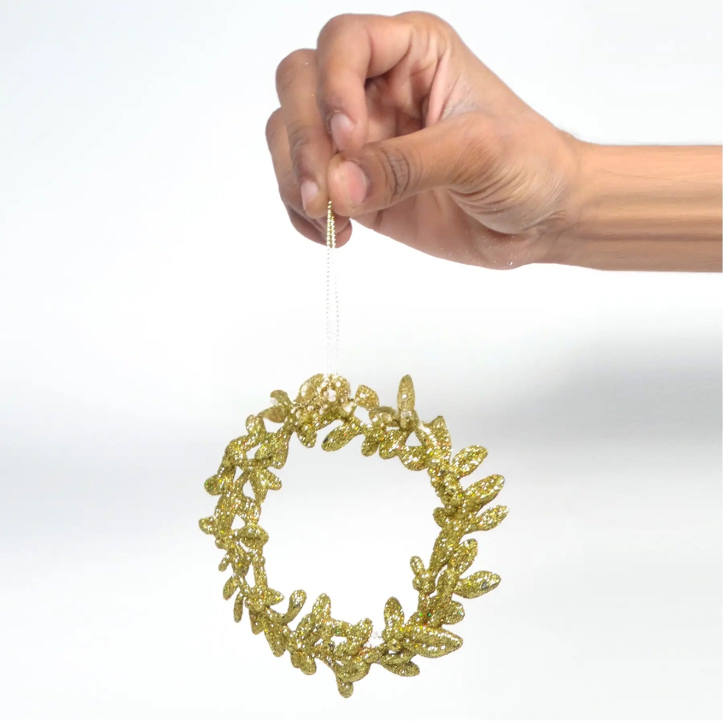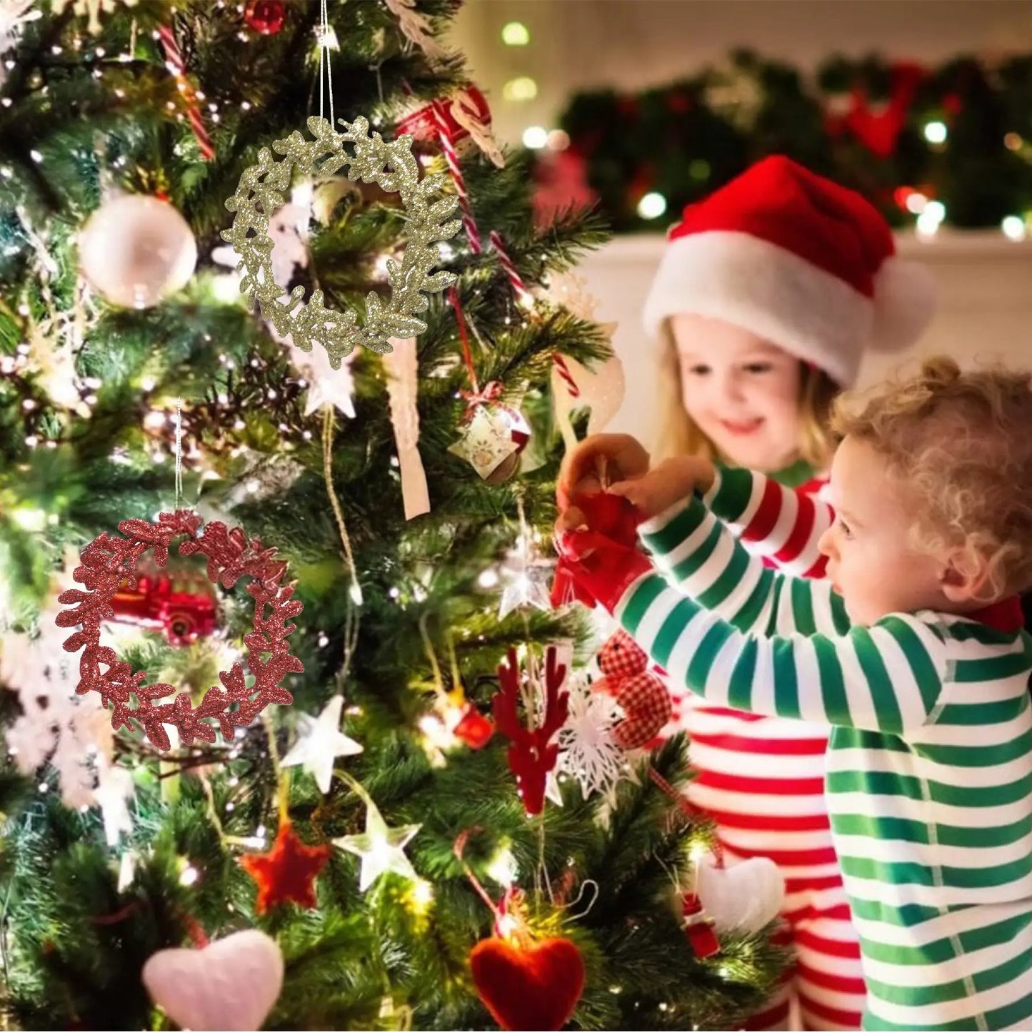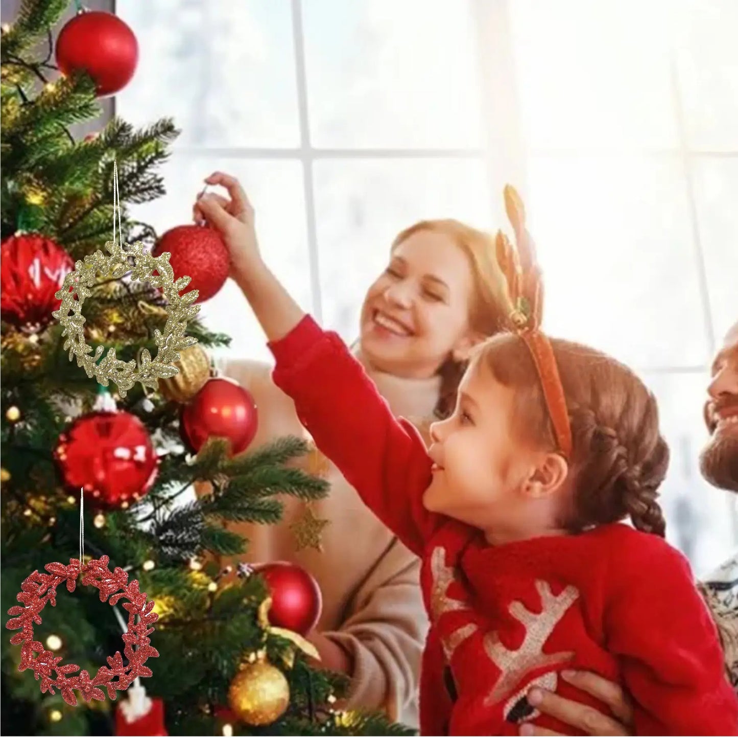 DESIGN: These Christmas wreath tree hangings have 2 different glitter colors golden & red. Lightweight and shatterproof, they are safe for children to handle.