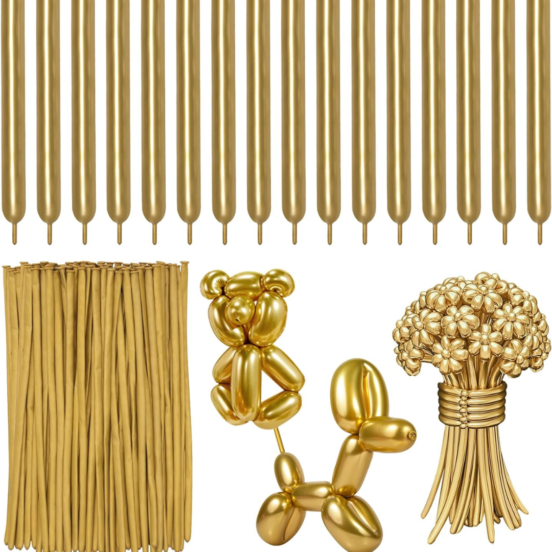 Gleaming Party Essential: Elevate your anniversaries and birthdays with this pack of 10 Chrome Gold BT Balloons, ideal for balloon twisting and creative decorations. These balloons are designed for balloon artists and enthusiasts, allowing you to create intricate balloon sculptures and designs.