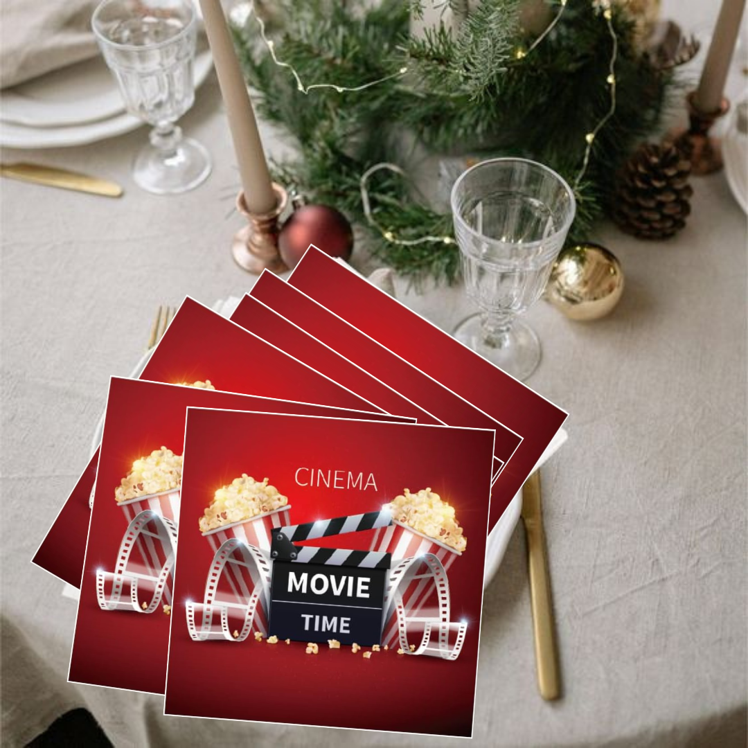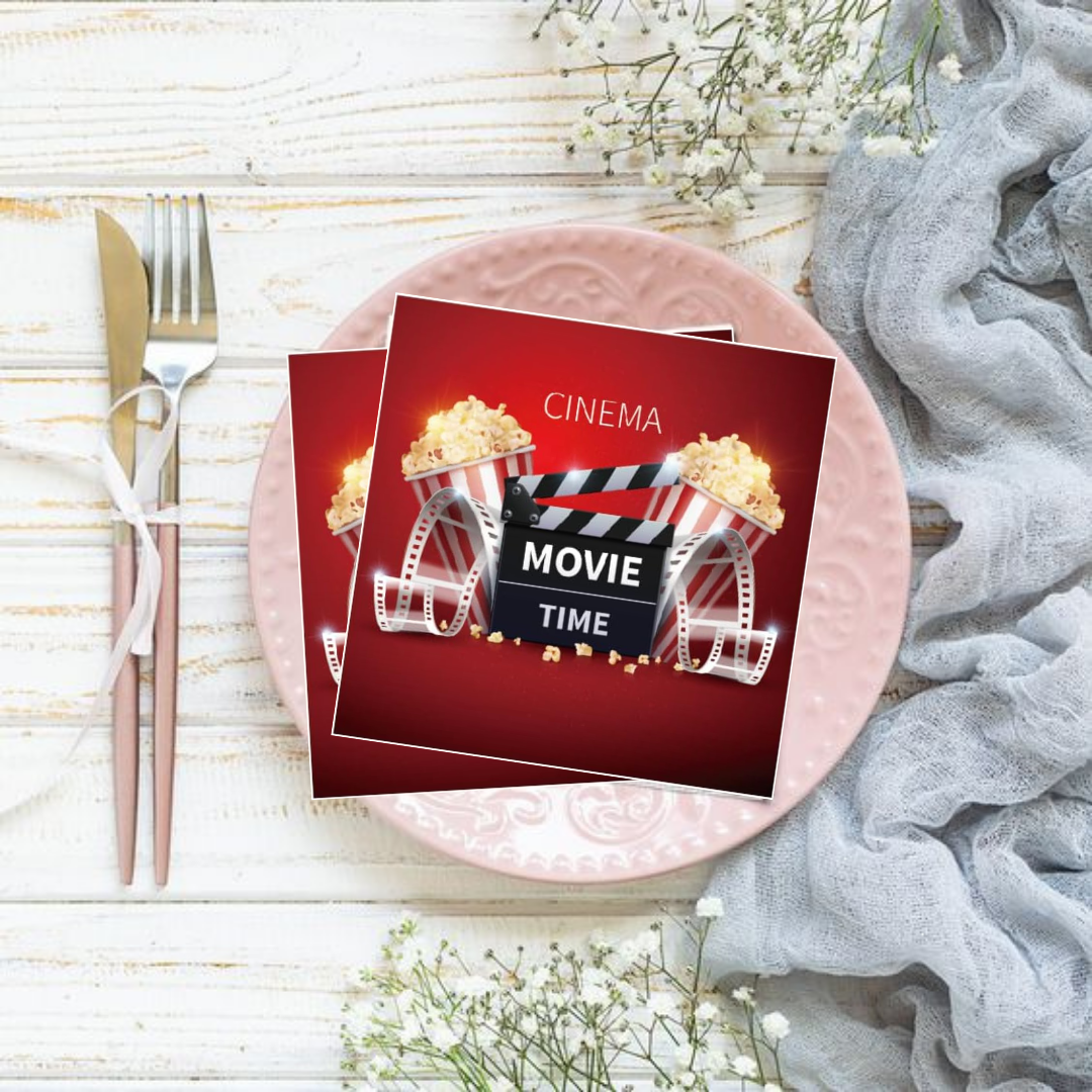 Cinema Theme Design:Lights, Camera, Napkins! Cinema Theme Paper Napkins - Pack of 16, For Movie Night. Elevate your movie night with these Cinema Theme Paper Napkins. They’re not just napkins; they’re essential companions to ensure your guests enjoy every moment of the cinematic adventure. Bring home the magic of the movies with these stylish and convenient napkins today!