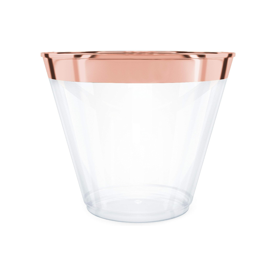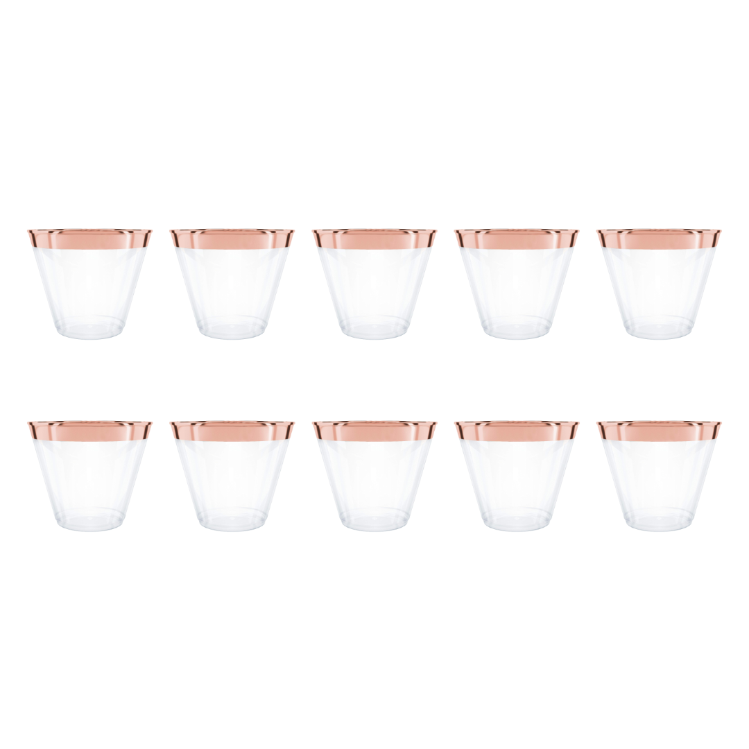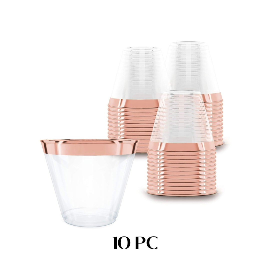 Wanna Party 10 Pack Rose Gold Rim 10oz Crystal Collection Disposable Clear Drinking Cups for Birthdays,Wedding, Party, Banquet, Home, Picnic, Outdoor Dinnerware, Bar, Nightclub, Liquors, Champagne, Desserts, Cocktails