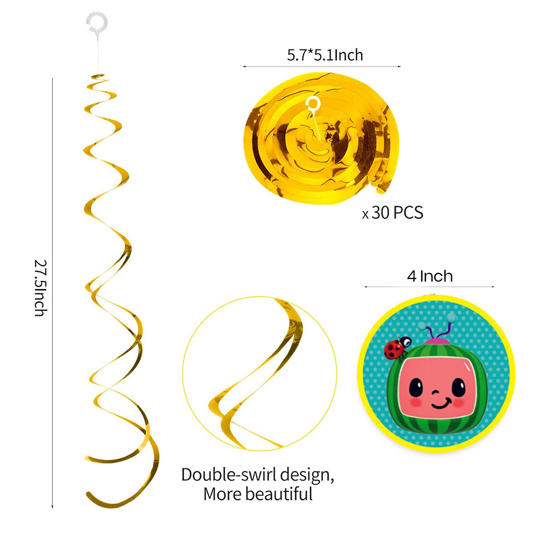 Wanna Party Coco Melon Swirl Decoration, Hanging Swirls For Birthday Decoration, Coco Melon Theme Swirl Decoration, Set of 12