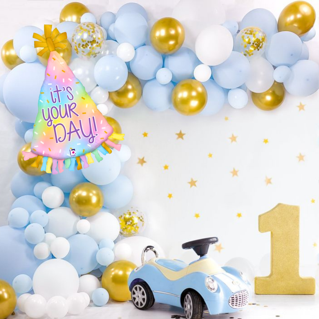 Hat Shape: Features a fun and colorful hat shape, which makes it a unique and festive decoration for birthday parties and celebrations.