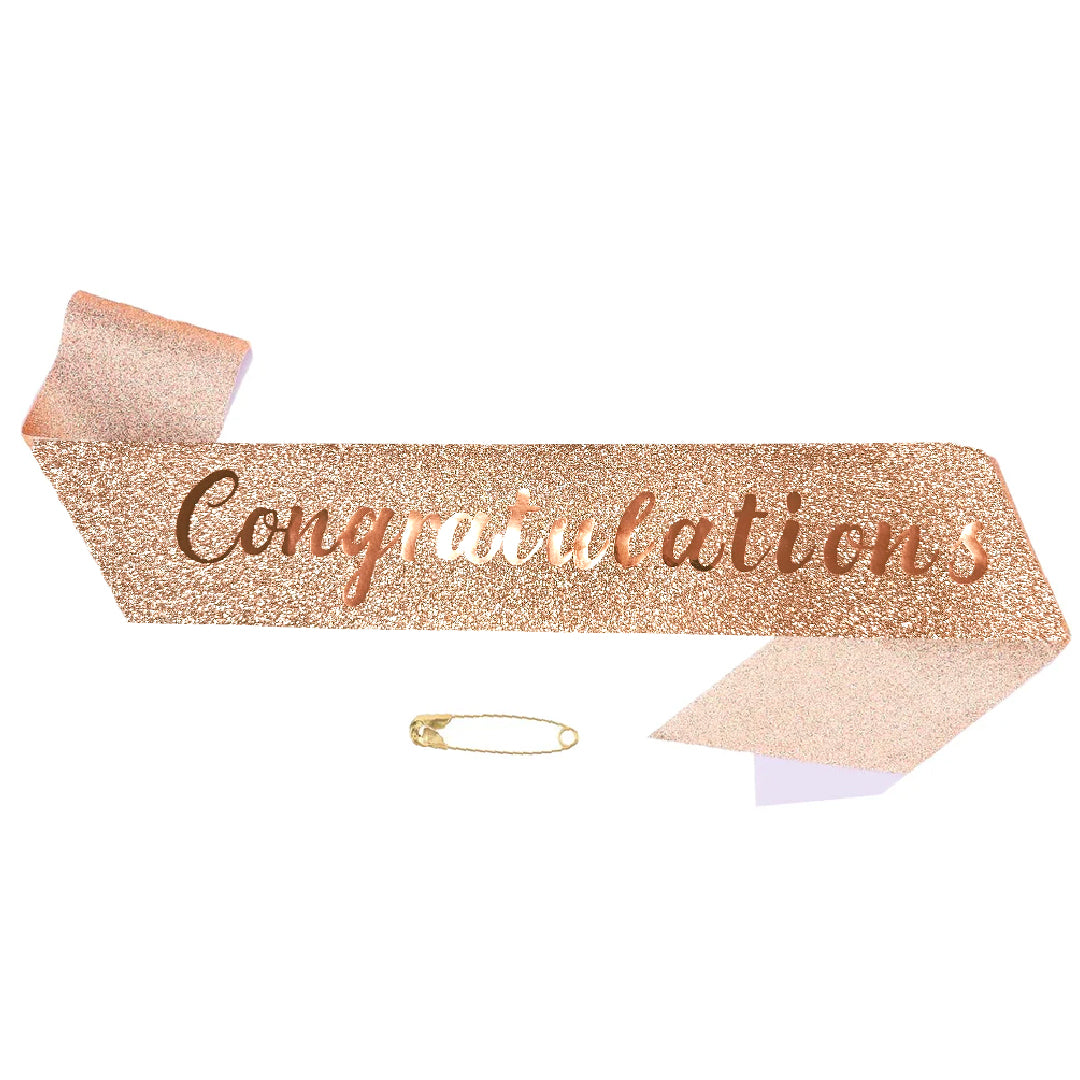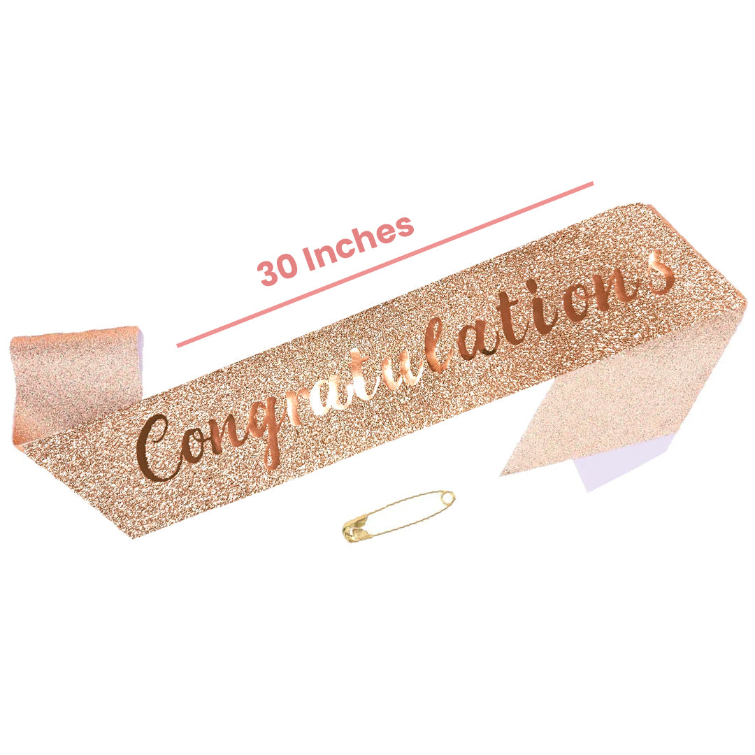 Elegant Rose Gold Lettering: The word “Congratulations” is beautifully printed in matching rose gold lettering, offering a seamless and sophisticated tone-on-tone look that shines in photos and under lights.