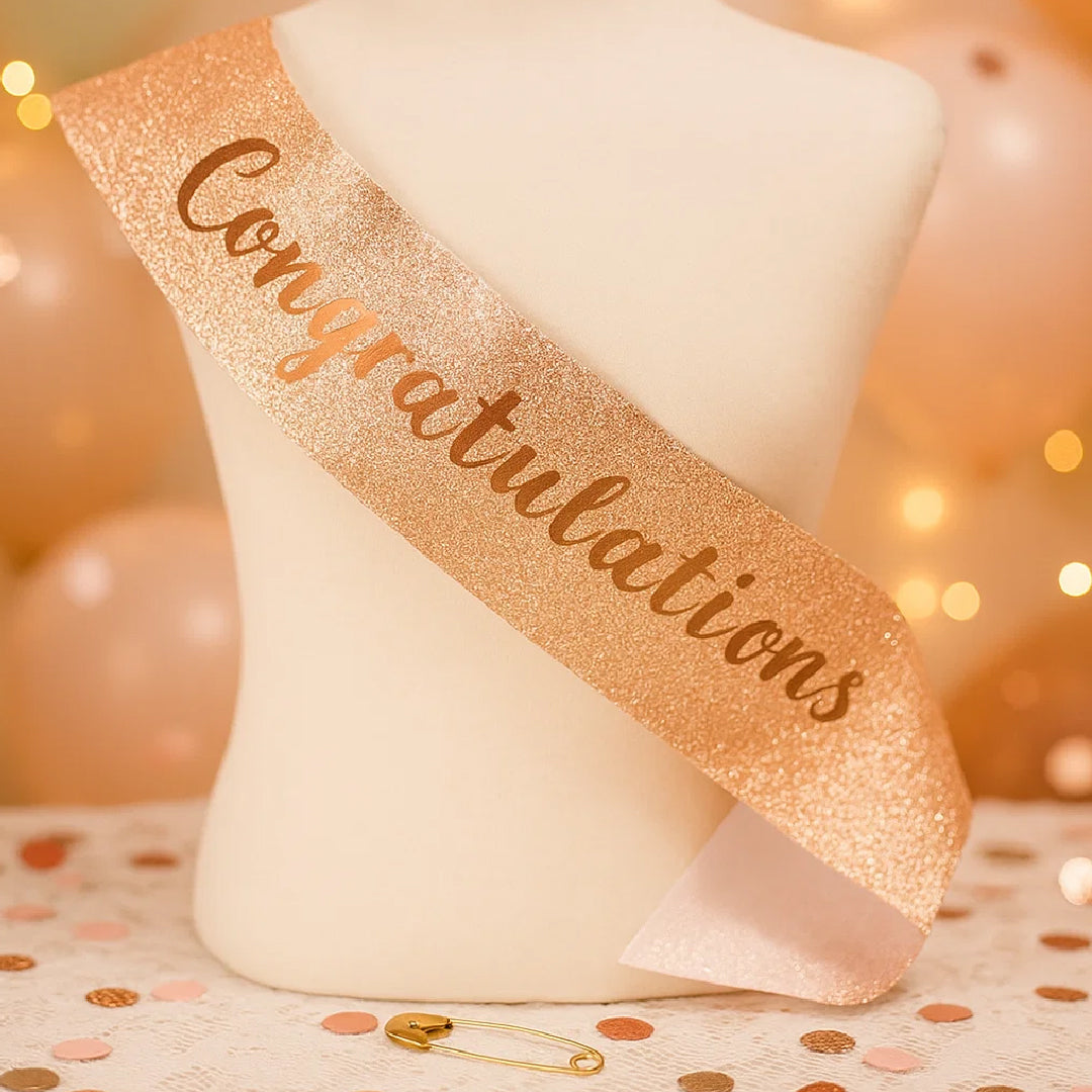 Stylish Rose Gold Glitter Finish: This sash features a sparkling rose gold glitter base that adds a glamorous and festive touch to any celebration, making the wearer stand out effortlessly.