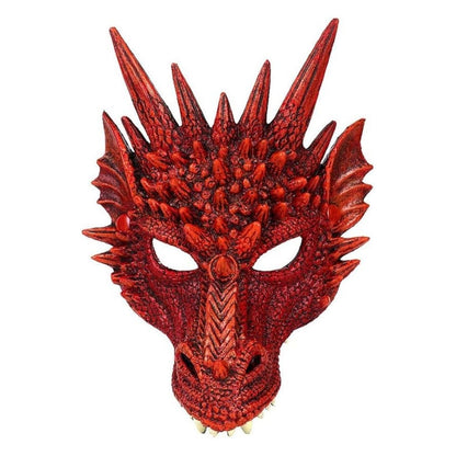 Fierce Dragon Design: This striking red dragon mask features dramatic sculpted details like sharp scales, fierce horns, and menacing eyes, instantly transforming you into a mythical beast ready to rule any costume party or Halloween event.