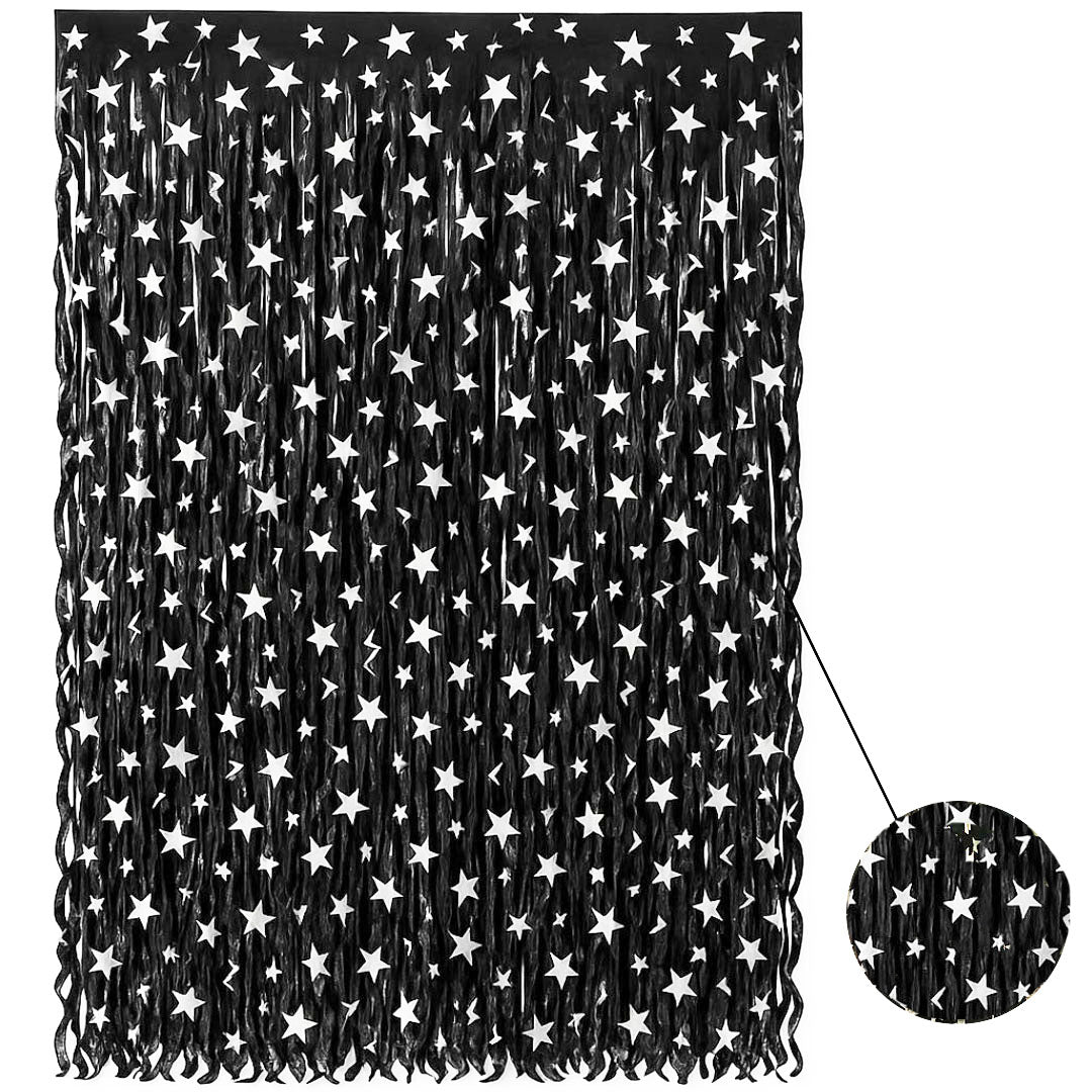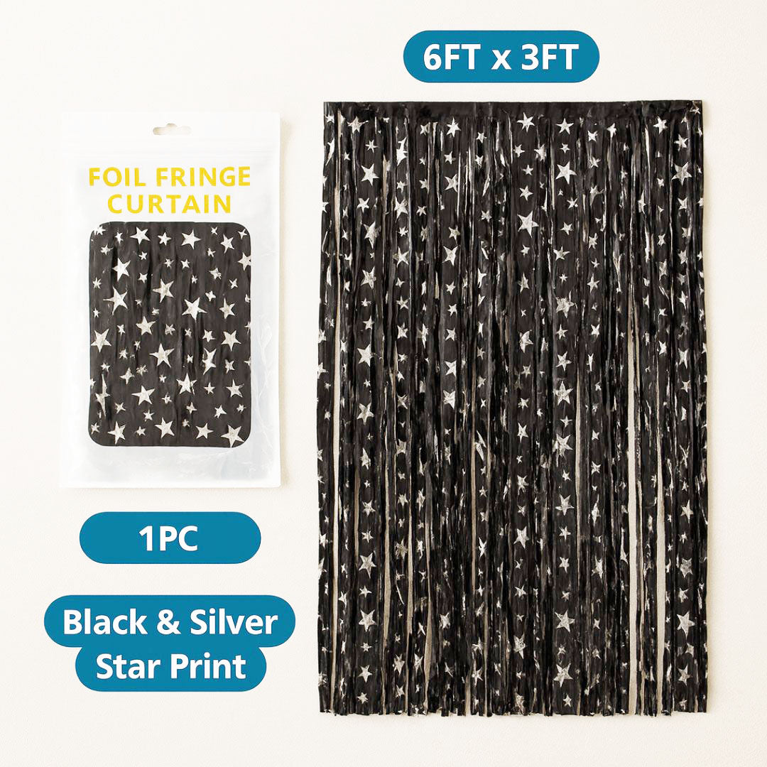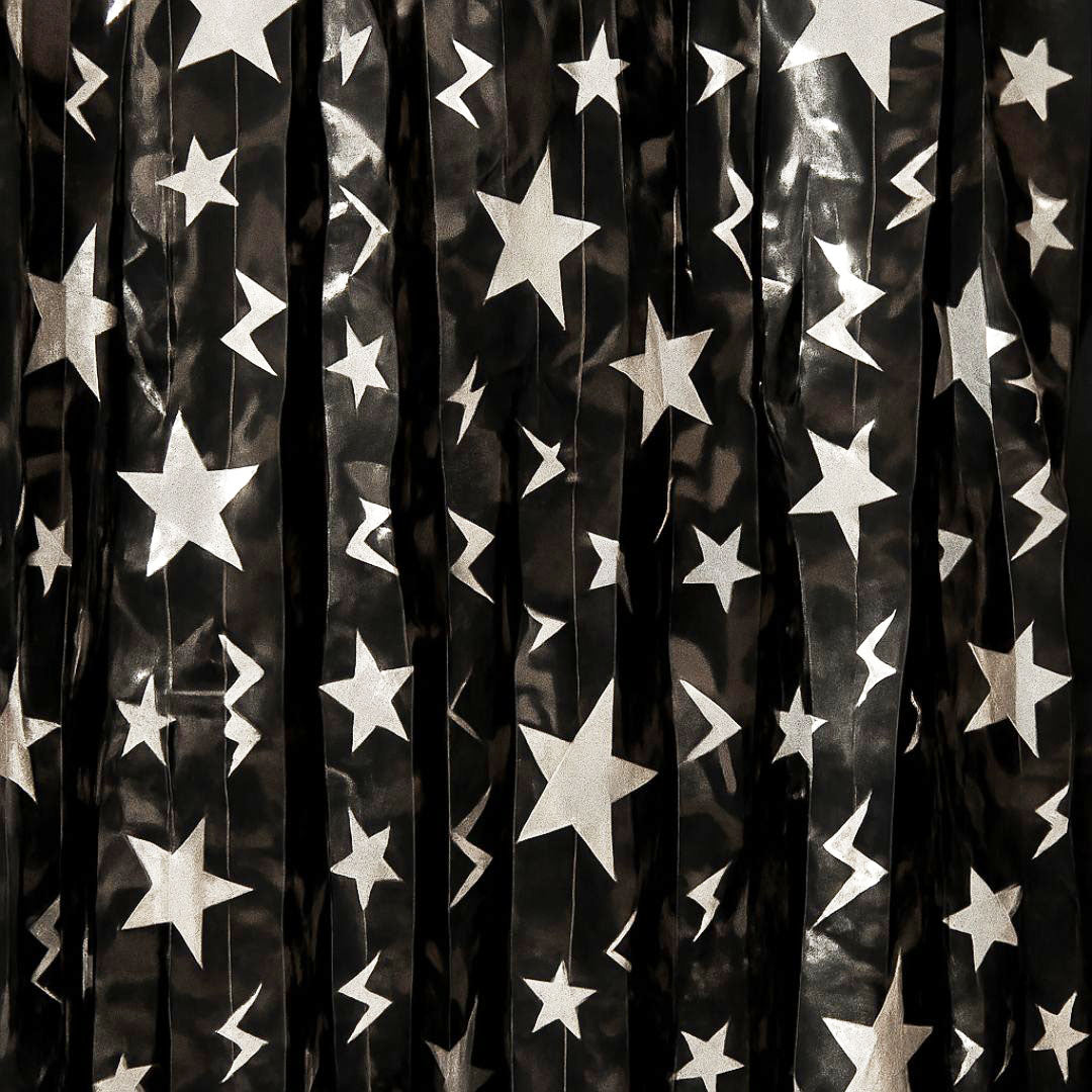 Curly Black and Silver Star Foil Curtain - 6FT x 3FT - 1PC