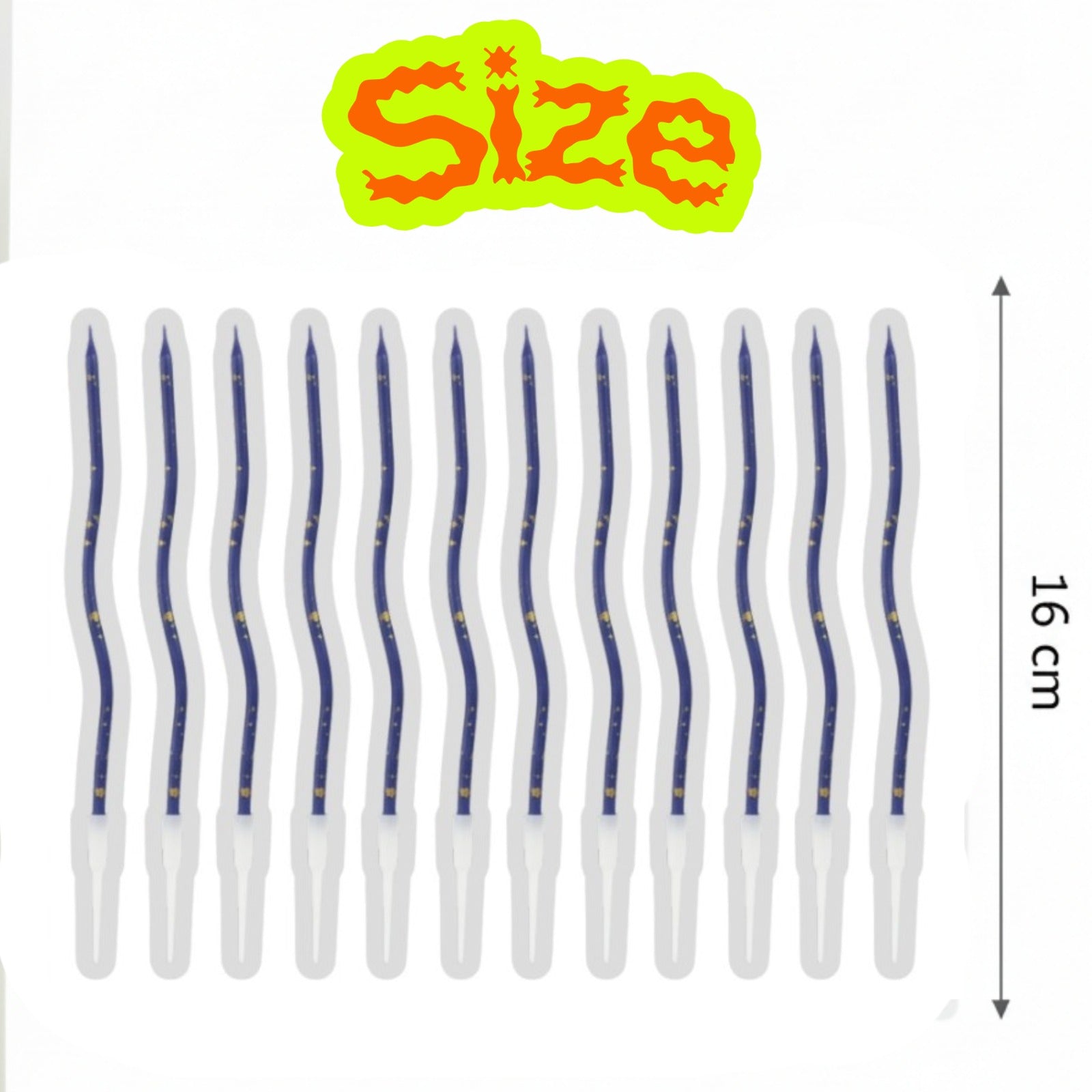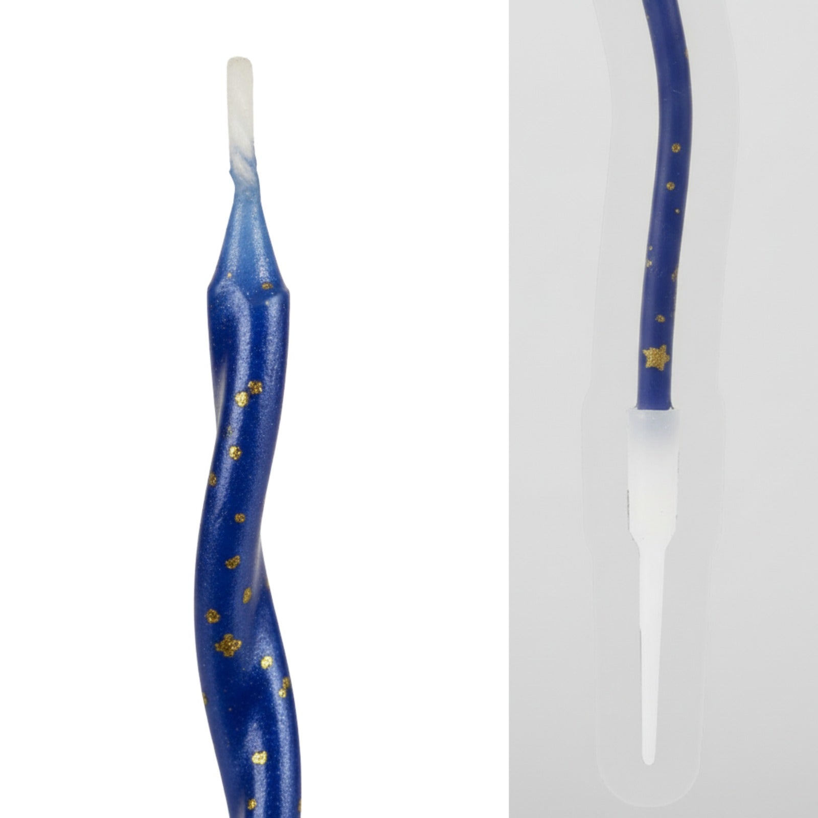 Wanna Party 12 count Blue and Golden Twisty Birthday Candles Spiral Cake Candles with Holders Metallic Cake Cupcake Candles Long Thin Curly Coil Cake Candles for Birthday, Wedding Party and Cake Decoration
