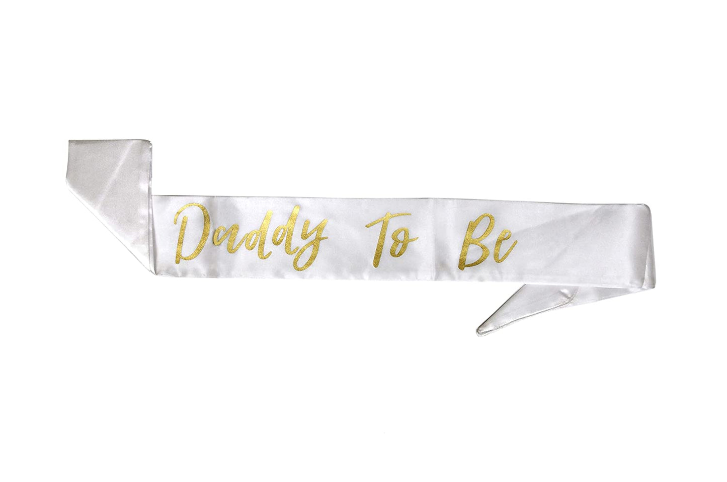 Treat the new father-to-be like a king with this daddy to be sash. The daddy-to-be sash features a colorful daddy-to-be headline in a golden word. A pretty satin white background completes the look. Give this father-to-be sash to the new father as a perfect baby shower party accessory and make him feel special.
