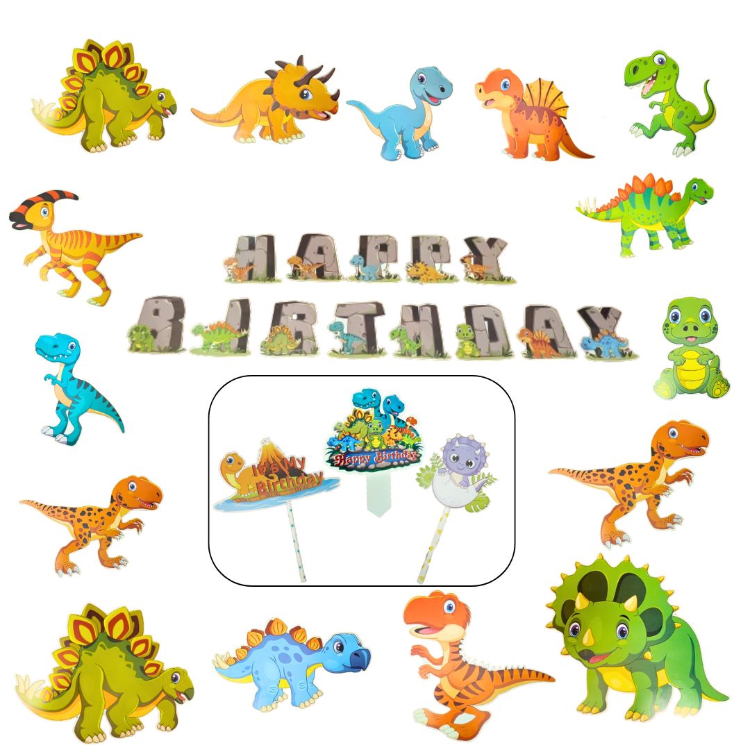 Wanna Party Dinosaur Theme Birthday Decoration Kit - Combo of 17 PCS| Dinosaur Happy Birthday Banner| Dinosaur Cake Toppers for Birthday | Dinosaur Cutouts I Dinosaur Props for Dinosaur Birthday Decoration Items