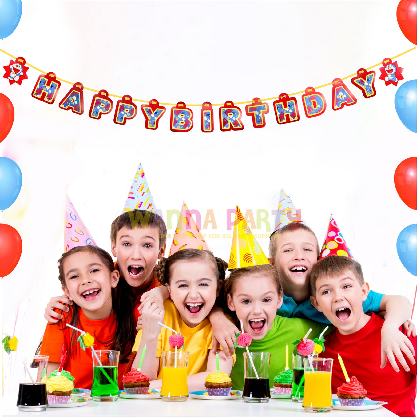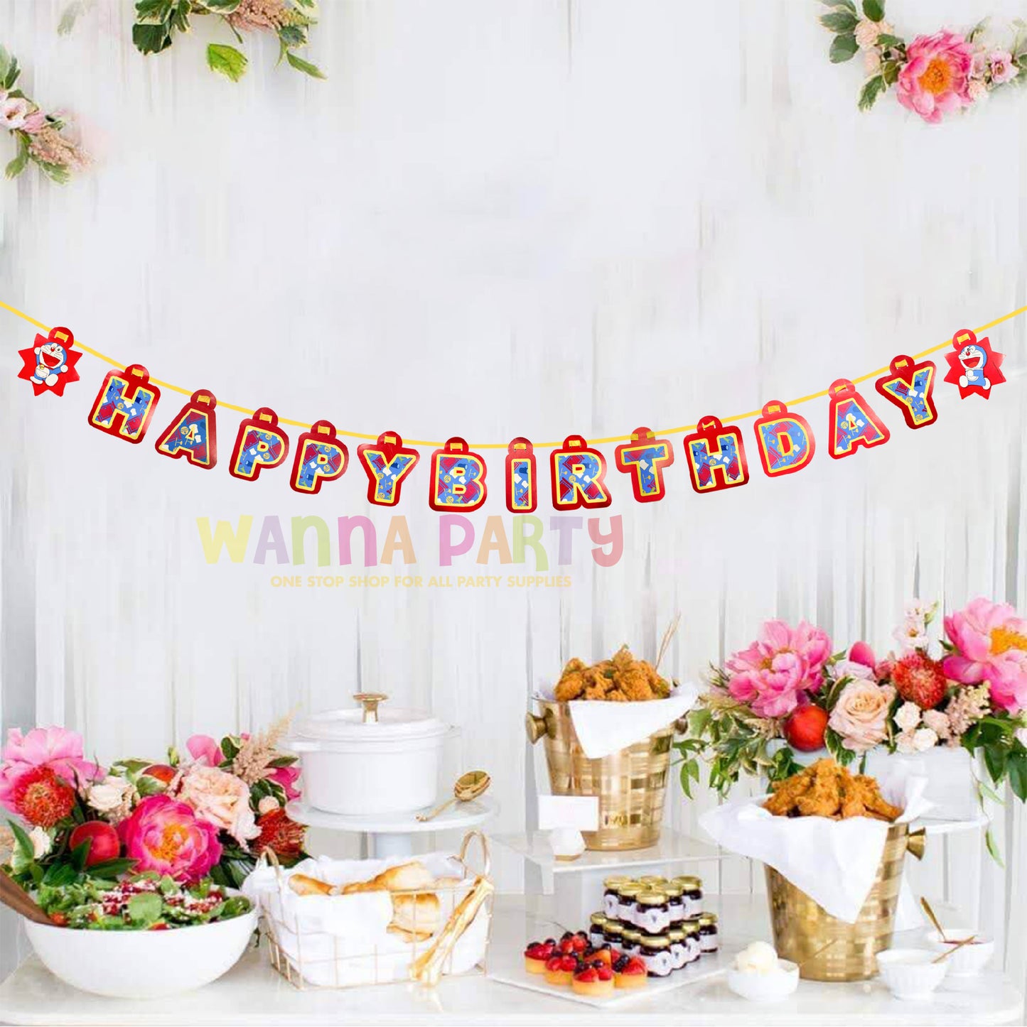 Wanna Party Doraemon Letter Banner | Birthday Party Decorations | Wall Decoration - 6FT