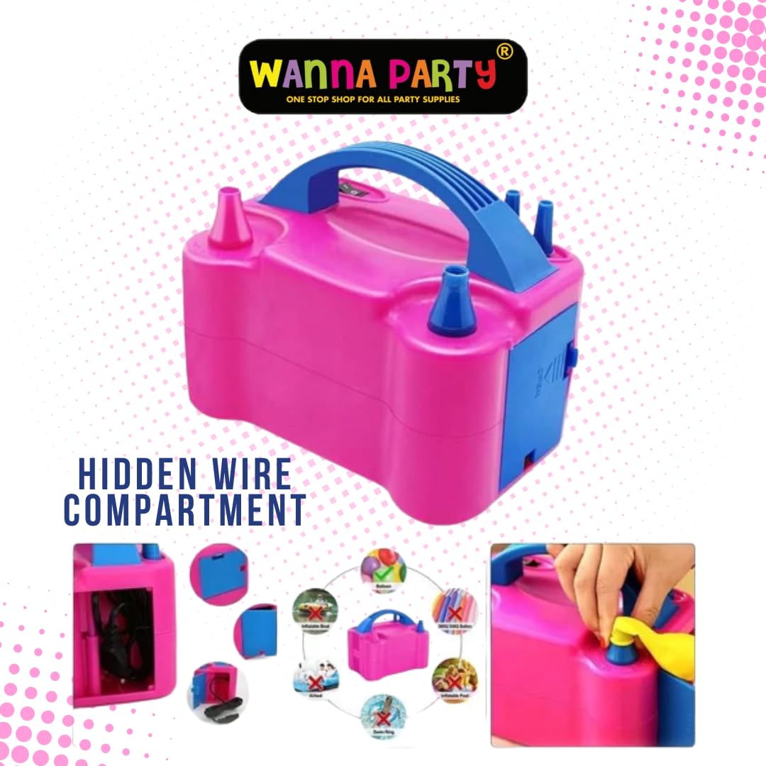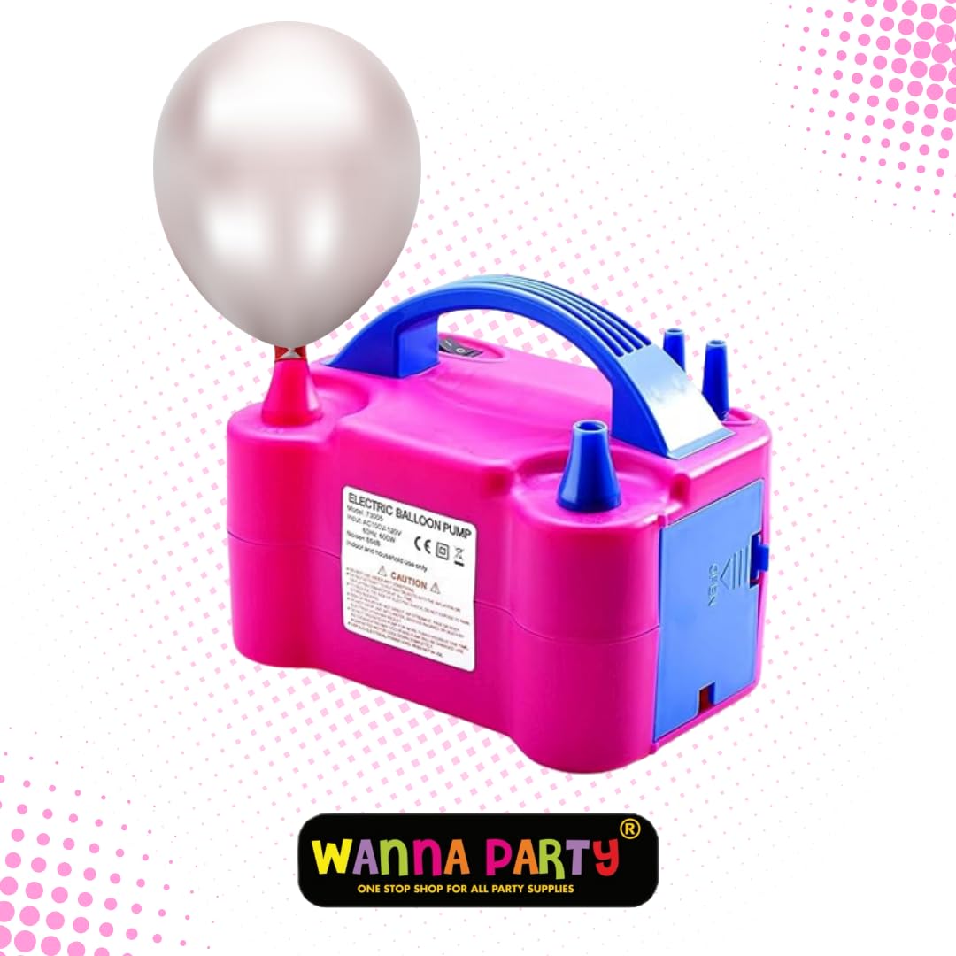 Wanna Party Electric Balloon Pump Machine with a Set of 5 Multicolor Balloons Free/Balloon Blower Machine/Balloon Air Pump/Balloon Pump/Balloon Filling Machine/Two Nozzle Balloon Pumper Electronic