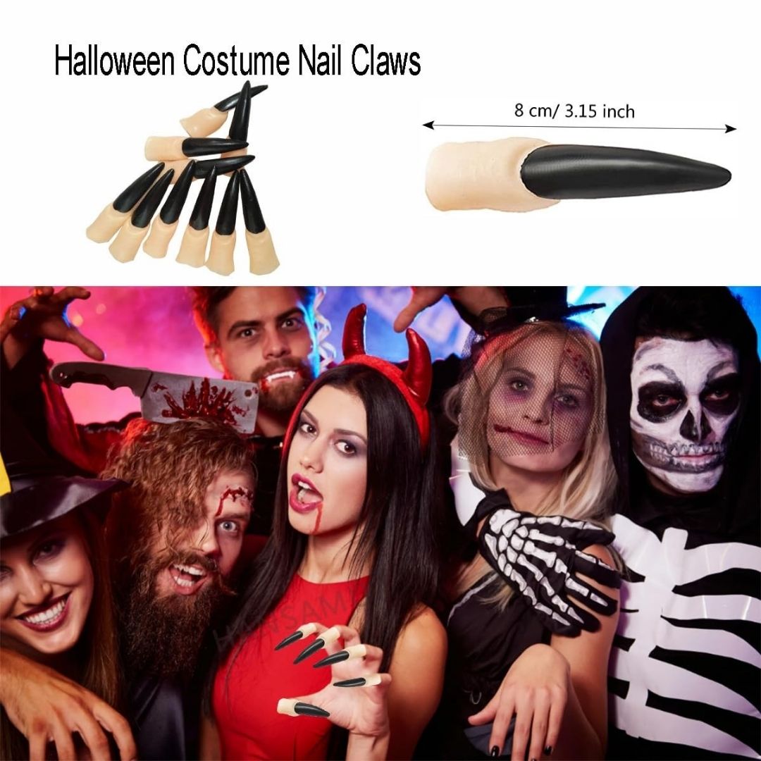 Creepy Witchy Look: This set includes 10 black fake witch nails designed to add an extra spooky touch to any Halloween witch costume, transforming ordinary hands into long, claw-like, sinister witch fingers instantly.